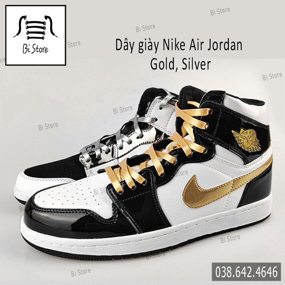 Giày Dép Nam > Phụ kiện giày dép > Dây giày || [𝗕𝗮́𝗻 𝘁𝗵𝗲𝗼 𝗰𝗮̣̆𝗽] Dây giày màu vàng bạc dành cho giày Nike Air Jordan 1 Gold, Silver cổ cao + cổ ngắn - Da PU chống nước
