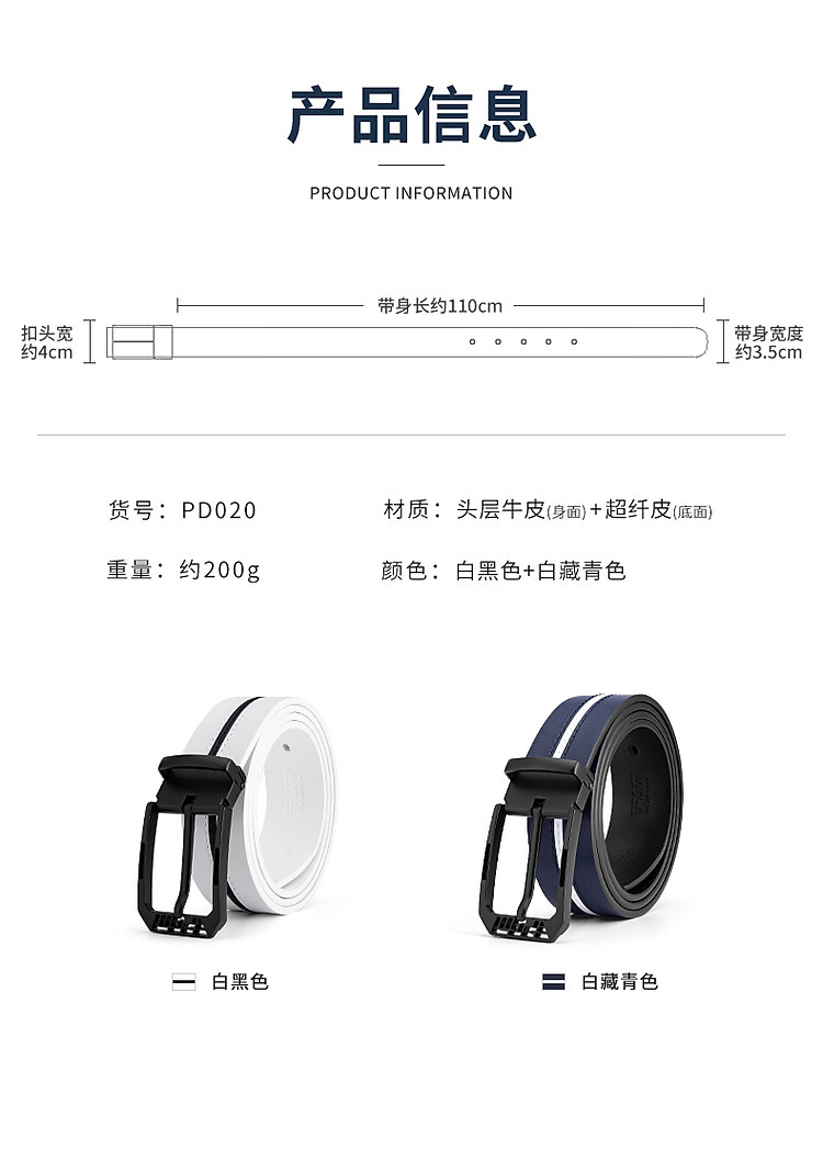 - Độ dài dây lưng: 110cm + Độ to bản: 3,5cm