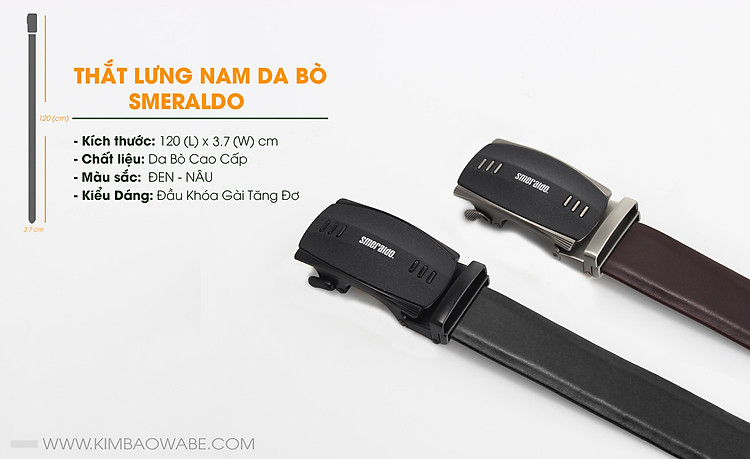 Tên sản phẩm: Dây Nịt Nam Da Bò Ý Smeraldo Thắt Lưng Da Cao Cấp Cho Nam Giới Mã CB-T4-XL-A02