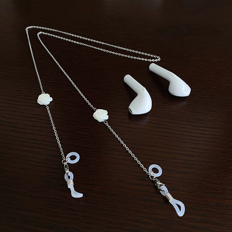 Dây phụ kiện kính dây chuyền đeo cổ đeo airpod charm hoa hồng bạch ấn tượng
