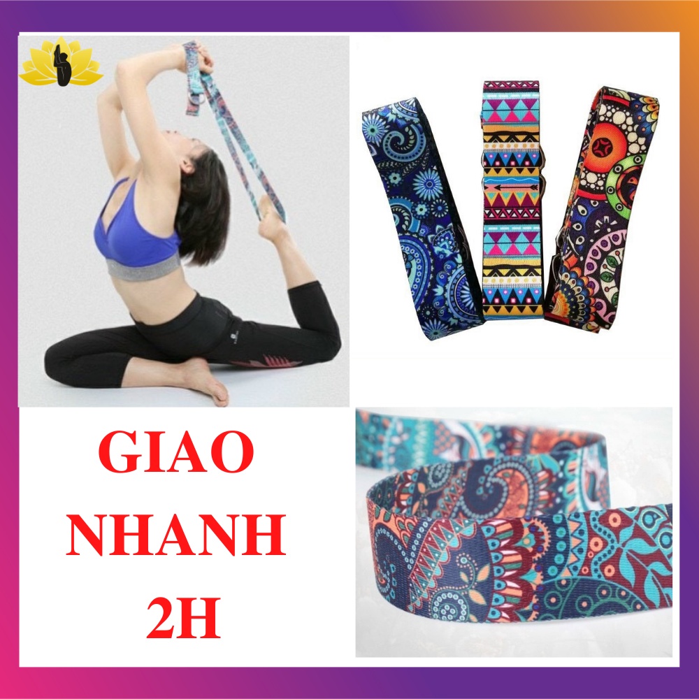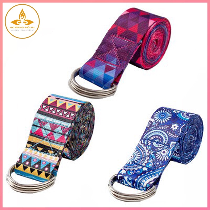 Dây tập yoga cotton hoa văn thổ cẩm dài 1m8 - 3.8cm có chốt móc , chịu lực tốt , hỗ trợ tập động tác trong tập yoga