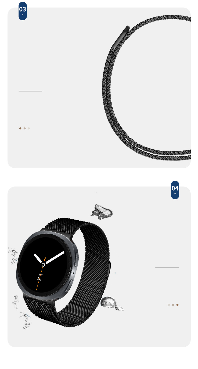 Sử dụng công nghệ tích hợp từ tính, công nghệ hàn laser mới nhất và công nghệ đánh bóng hai bên.Toàn bộ dây đeo tròn hơn, đẹp, chắc chắn hơn.
