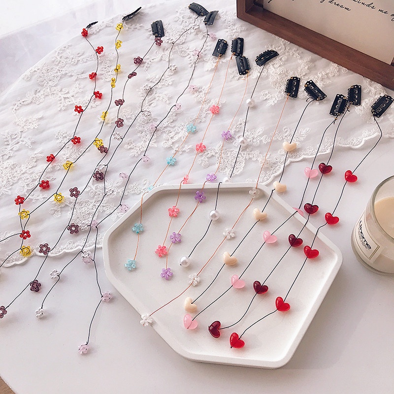Chi tiết sản phẩm: Chất liệu: Sợi Màu sắc: như hình ảnh Chiều dài: tùy loại từ 25cm - 40cm Đặc điểm: Cài sợi dây đính Hoa hoặc trái tim Gói hàng bao gồm: 1 cài sợi dây - Màu sắc & Đặc điểm: Có 8màu cho bạn lựa chọn, những màu tươi sáng này giúp bạn trông tự tin và xinh đẹp hơn. kiểu dáng thời trang và vẻ ngoài đẹp mắt sẽ mang đến cho bạn một bộ tóc tự nhiên đẹp nhất. - Dành cho mọi dịp: Tóc giả dài gợn sóng này phù hợp cho mọi dịp. Sản phẩm không chỉ mang đến cho bạn cảm giác thoải mái khi sử dụng mà còn khiến bạn trở nên quyến rũ hơn. Hoàn hảo cho trang phục hàng ngày, dự tiệc, đám cưới, hóa trang, v. v.