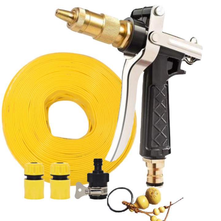 Giới thiệu Bộ dây vòi xịt nước rửa xe, tưới cây ,tăng áp 3 lần,loại 7m,10m 206236 đầu đồng,đai,nối nhựa v+ túi đựng bút
