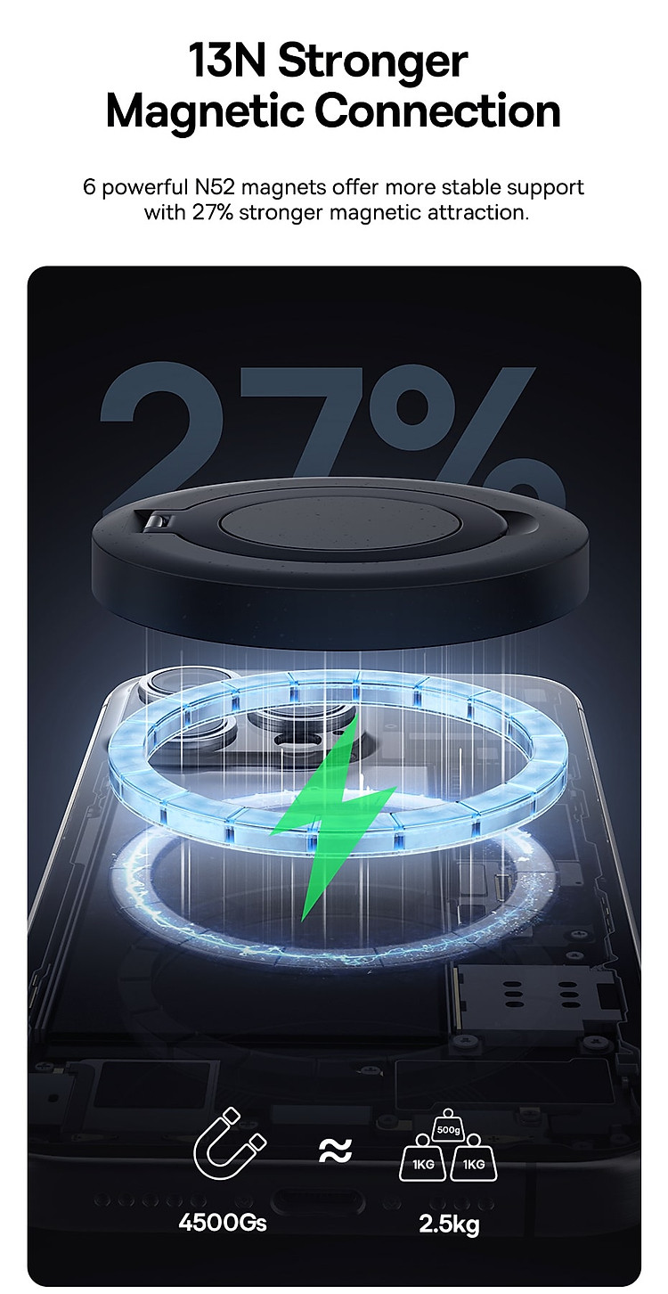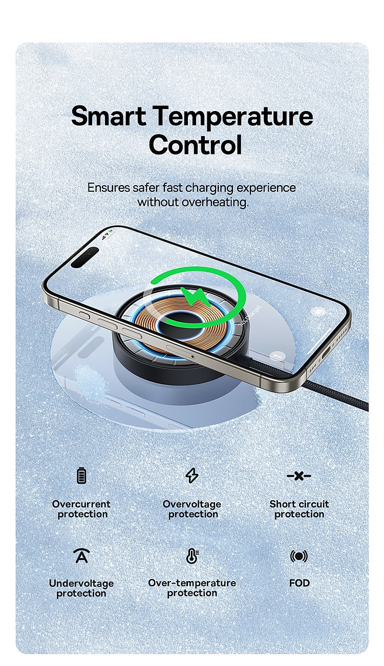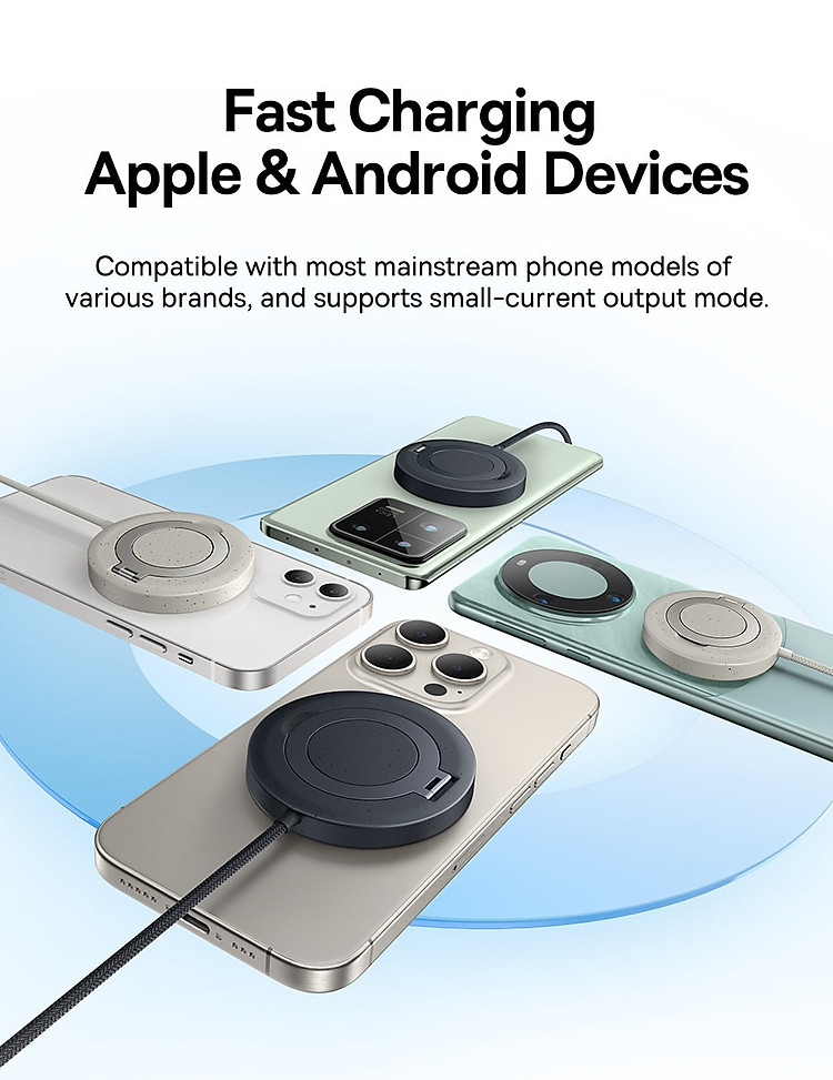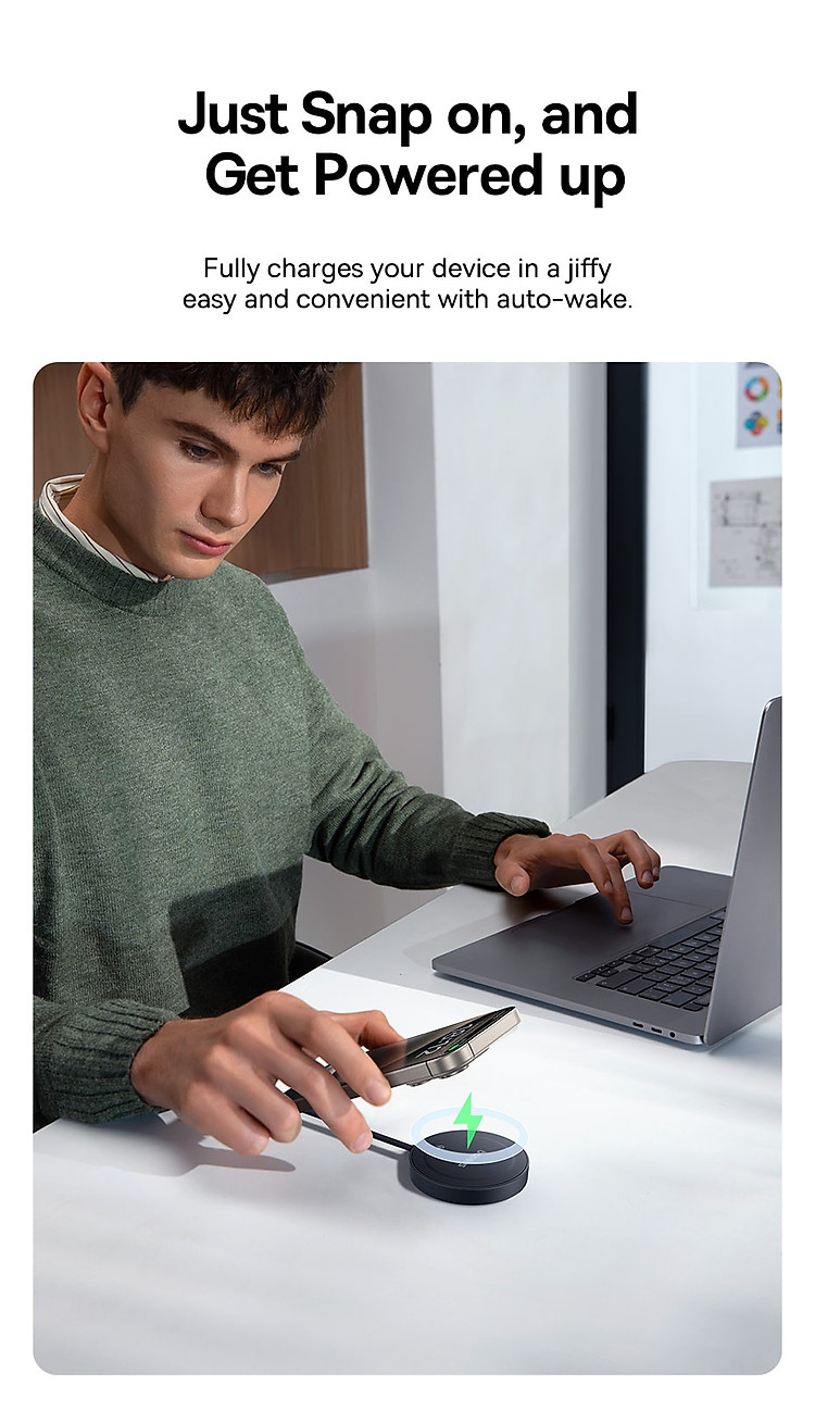 Sạc Không Dây Magnetic: Thiết kế với tính năng magnetic, giúp đảm bảo việc đặt và sạc điện thoại diễn ra một cách an toàn và chính xác.