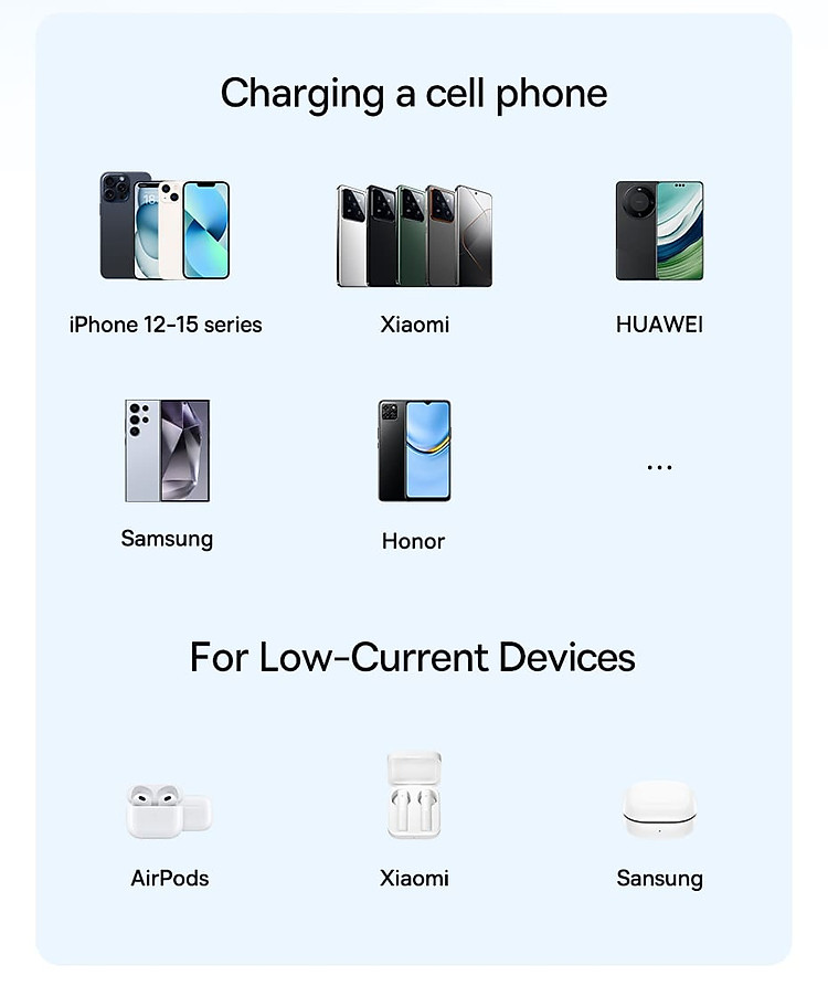 An Toàn và Tiện Lợi: Có tính năng bảo vệ quá tải và quá nhiệt, đảm bảo an toàn cho thiết bị và người dùng trong quá trình sạc.