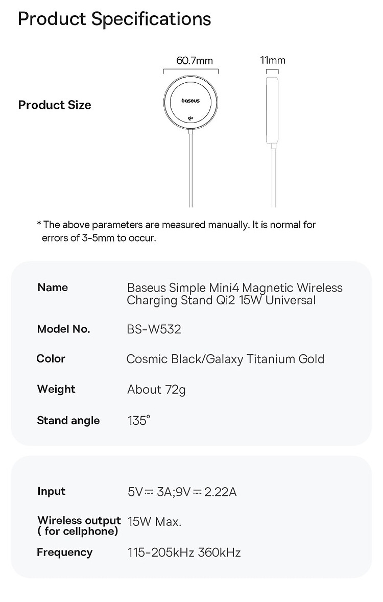 | Tên | Đế Sạc Không Dây Baseus Simple Mini4 Magnetic Wireless Charging Stand Qi2 15W Universal |