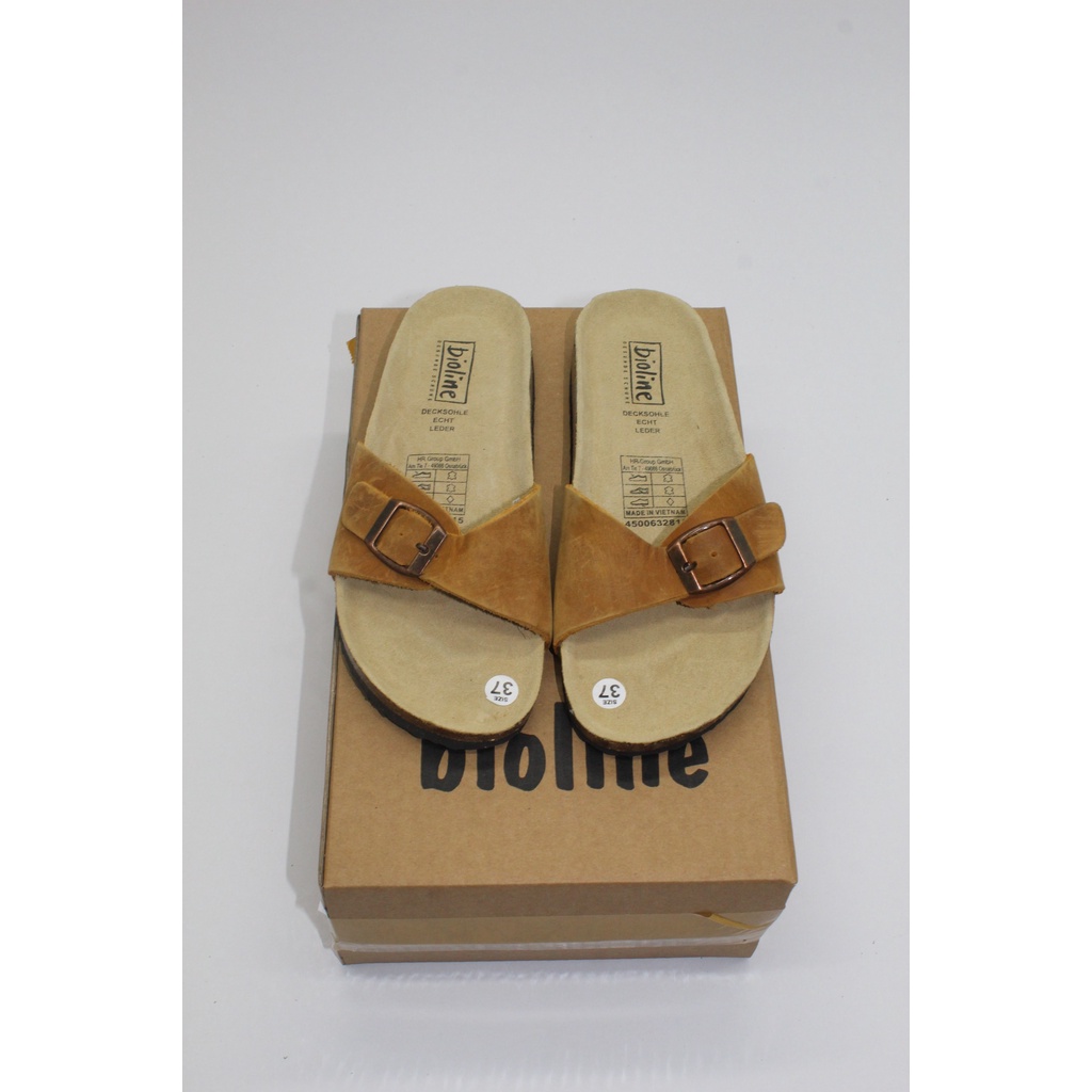 Giới thiệu [ĐẾ TRẤU DA BÒ] Dép da bò birken quai ngang Bioline đế trấu unisex mã B08 - Bioline Official