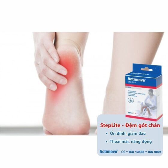 Đệm gót chân Actimove Steplite với hình dạng phù hợp giải phẫu và miếng lót nhúng xanh mềm hiệu quả trong việc giảm áp lực và giảm đau. Dễ mang và sử dụng, sản phẩm có thiết kế đặc biệt để mang đến cảm giác đặc biệt ổn định và thoải mái bảo đảm tăng cường sự tuân thủ và quá trình chữa bệnh nhẹ nhàng.