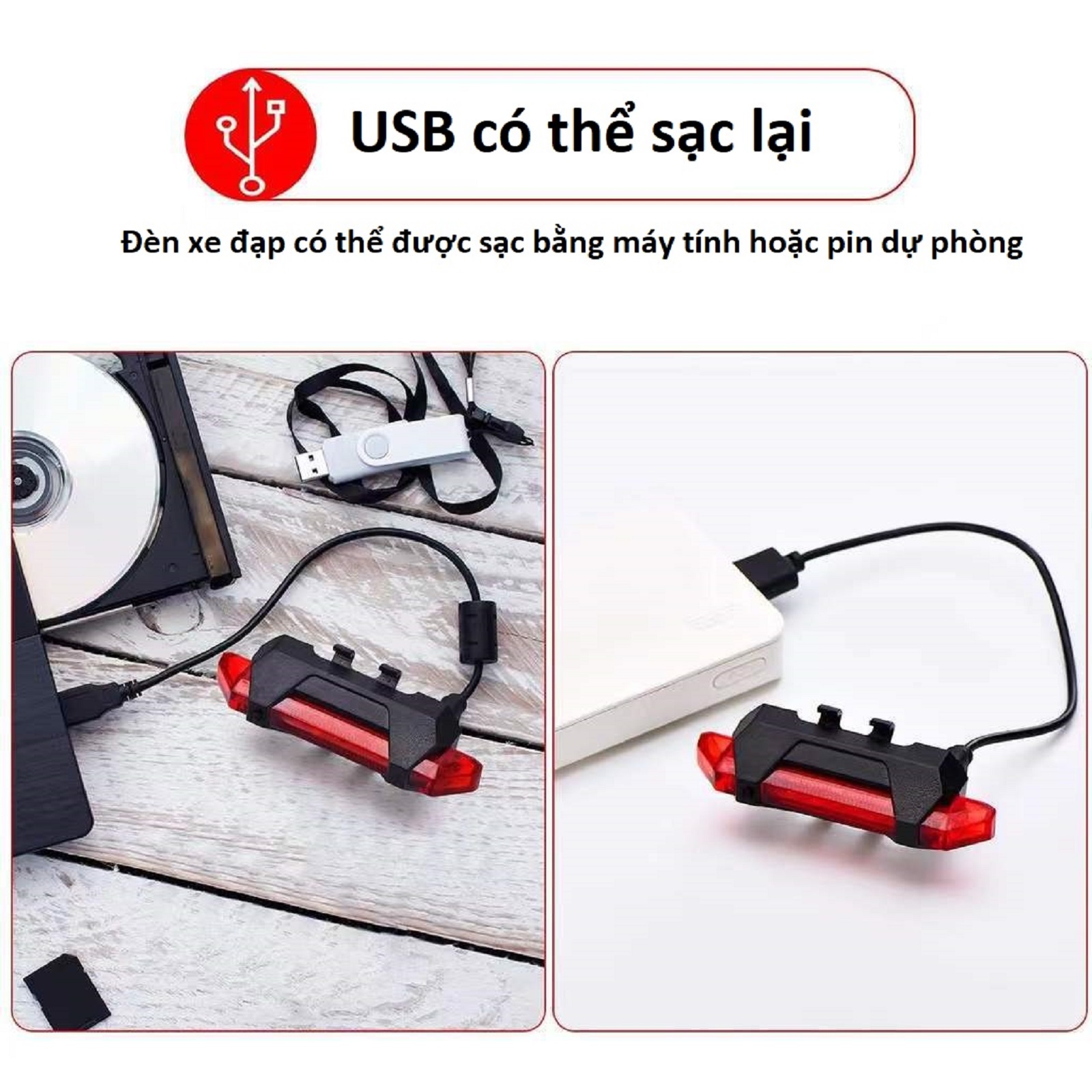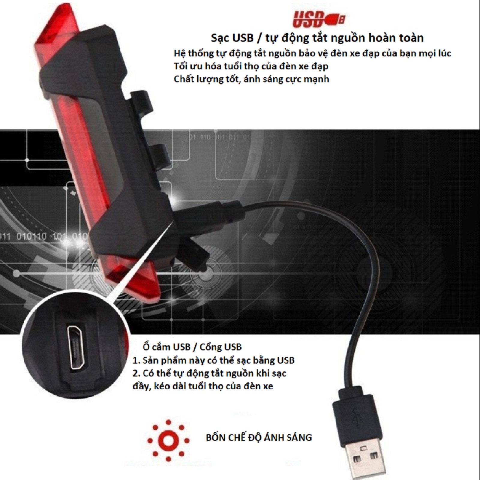 - Đèn hậu xe đạp có thể sạc lại USB và tự động ngắt khi sạc đầy.