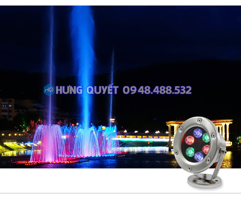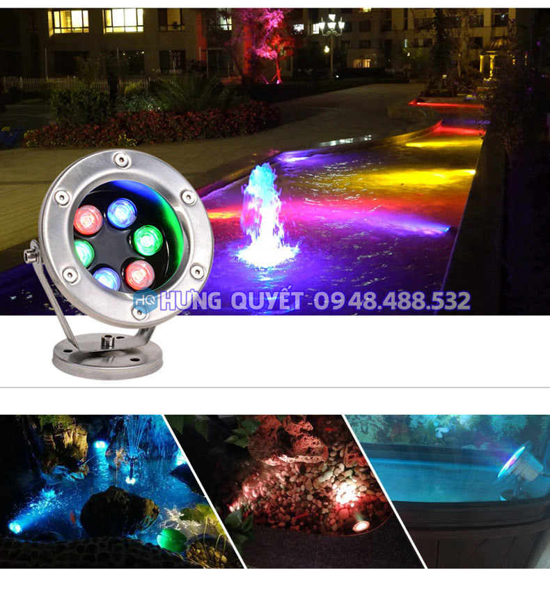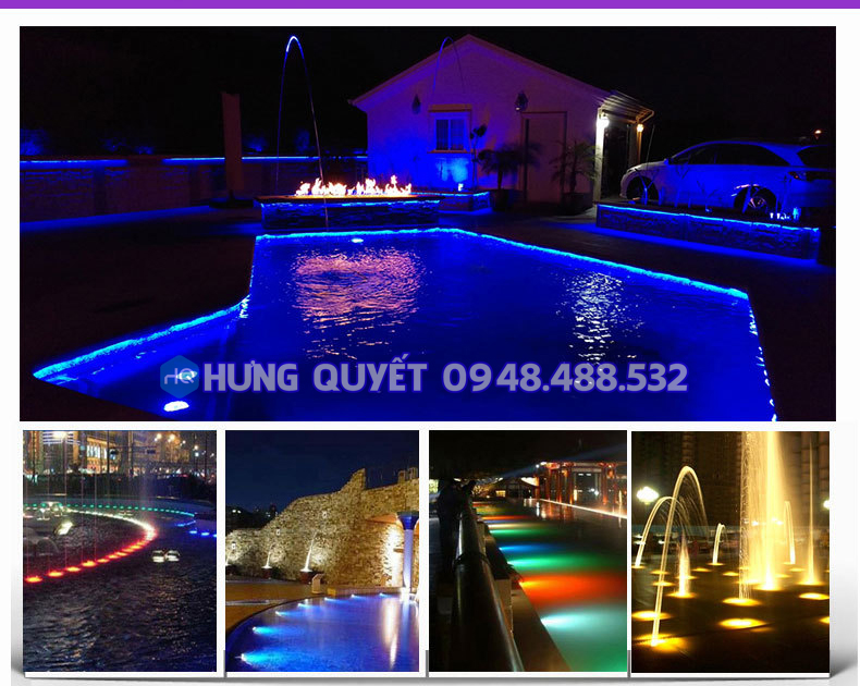 - Đèn LED tạo cảnh quan dưới nước. Sử dụng nhiều mục đích: cho ao nuôi, hồ bơi, đài phun nước, sân vườn ngoài trờ