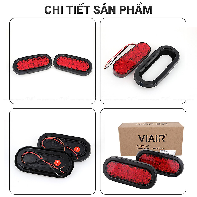 - Chất liệu Đèn led hình oval xe tải VIAIR VI-019 12v màu đỏ: ABS, đèn LED.
