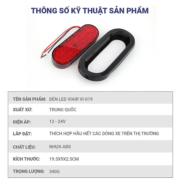 - Đèn led hình oval xe tải VIAIR VI-019 12v màu đỏ được chế tạo bằng nhựa ABS và đèn LED giúp sản phẩm đạt tuổi thọ sử dụng cao giúp hỗ trợ chiếu sáng hiệu quả trên những chặng đường dài.