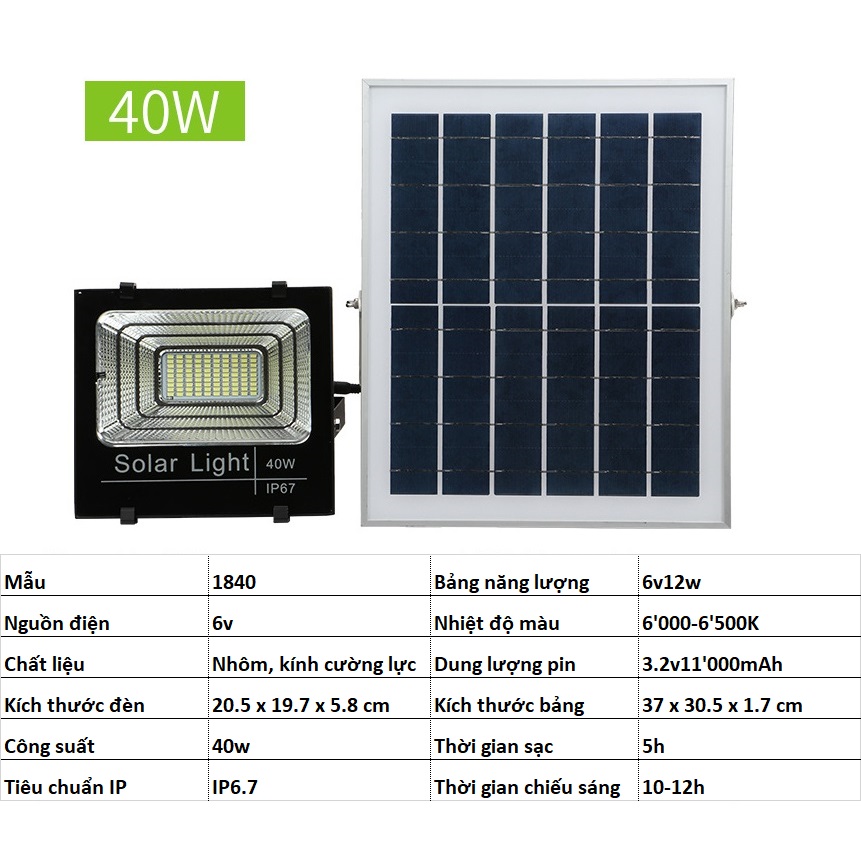 - Pin lưu trữ li thium i-on cho phép đèn chiếu sáng ít nhất là 8 tiếng, tối đa thường là lên tới 12 tiếng.