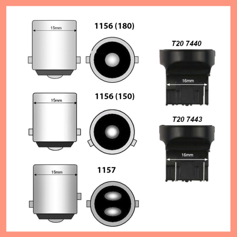 ⚠️ LƯU Ý: - VÌ ĐÈN LED SỬ DỤNG ĐIỆN 1 CHIỀU NÊN CHỈ SỬ DỤNG ĐIỆN BÌNH, TUYỆT ĐỐI KHÔNG DÙNG ĐIỆN MÁY (ảnh hưởng tới độ bền và tính năng của sản phẩm) - Chân cắm T20 shop đang bán là chuẩn 7443 (2 chế độ: sáng mờ và sáng rõ), khi lắp vào chuôi đèn 7440 (1 chế độ sáng) thì đèn sẽ hoạt động như chuẩn 7440 bình thường. - Chân cắm 1156 có 2 biến thể là ngạnh đối xứng (180 độ) và ngạnh tù (150 độ), quý khách nên kiểm tra kĩ loại ngạnh phù hợp để đặt mua đúng