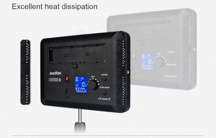 Godox LED500LR được thiết kế với bốn phản xạ cho linh hoạt hơn và tập trung hiệu ứng ánh sáng, nó trọng lượng chỉ 620 gam và các kích thước là 250 x 170 x 45 mm, mà là nhiều hơn nữa trọng lượng nhẹ và nhỏ gọn hơn so với Godox LED500.