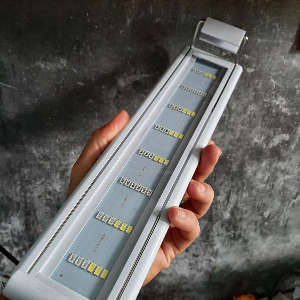 Đèn Led Thuỷ Sinh Màu WRGB | Đèn Led 3 Chế Độ Màu, 4 Dãy Led Cho Hồ Thuỷ Sinh Cá Cảnh ✔️ Quy cách: dạng LED máng, có 2 chân kẹp thành hồ ✔️ Đặc điểm: - Sản phẩm đèn led thuỷ sinh WRGB giá rẻ, vừa túi tiền, phù hợp cho các bạn mới bắt đầu chơi thuỷ sinh, không yêu cầu cao; 👉 Bạn có thể kết làm đèn phụ, kết hợp với các loại đèn trắng khác để tăng độ sáng và màu sắc cho cây thuỷ sinh và tiết kiệm chi phí nhất; - Đèn có 4 dãy LED hoặc 6 dãy LED (tuỳ chọn), bóng led W-RGB phù hợp nhiều loại cây; - Chân thép không gỉ có thể điều chỉnh, phù hợp cho nhiều loại kích thước bể; - Độ dày chỉ 10 mm, cho không gian xem nhiều hơn, nhỏ và nhẹ, dễ dàng lắp đặt - Sử dụng bóng LED 5730 chất lượng cao, ánh sáng dịu cho mắt bạn; - Hoàn hảo cho bể cá, bể thuỷ sinh. ✔️ Phân loại: Sản phẩm có các size sau, bạn có thể lựa chọn để phù hợp với kích thước của bể mình ❖ LED MÀU 3 CHẾ ĐỘ - 4 DÃY ☘ 𝐋𝐞𝐝 𝐗-𝐀𝟐𝟎𝟎 - công suất 5W, phù hợp cho hồ 20-25cm ☘ 𝐋𝐞𝐝 𝐗-𝐀𝟑𝟎𝟎 - công suất 8W, phù hợp cho hồ 30-40cm ☘ 𝐋𝐞𝐝 𝐗-𝐀𝟒𝟎𝟎 - công suất 11W, phù hợp cho hồ 40-50cm ☘ 𝐋𝐞𝐝 𝐗-𝐀𝟓𝟎𝟎 - công suất 14W, phù hợp cho hồ 50-60cm ☘ 𝐋𝐞𝐝 𝐗-𝐀𝟔𝟎𝟎 - công suất 16W, phù hợp cho hồ 60-70cm ❖ LED MÀU 3 CHẾ ĐỘ - 6 DÃY ☘ 𝐋𝐞𝐝 𝐋-𝟐𝟎𝟎 - công suất 6W, phù hợp cho hồ 20-30cm ☘ 𝐋𝐞𝐝 𝐋-𝟑𝟎𝟎 - công suất 10W, phù hợp cho hồ 30-40cm ☘ 𝐋𝐞𝐝 𝐋-𝟒𝟎𝟎 - công suất 13W, phù hợp cho hồ 40-50cm ☘ 𝐋𝐞𝐝 𝐋-𝐀𝟔𝟎𝟎 - công suất 20W, phù hợp cho hồ 60-70cm