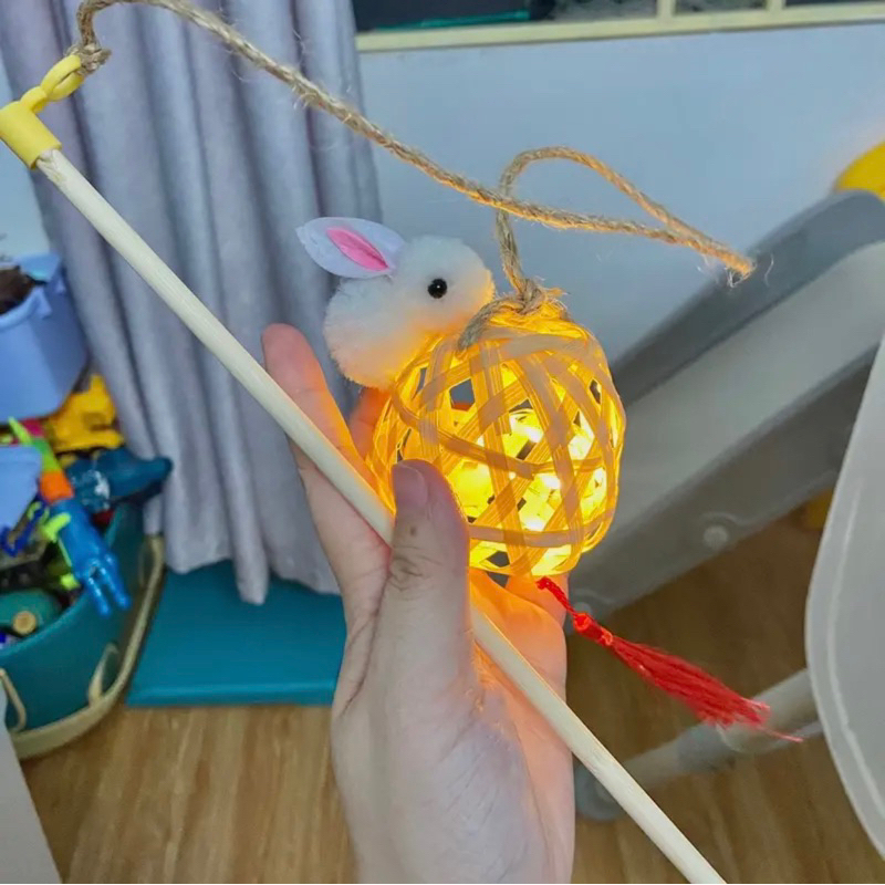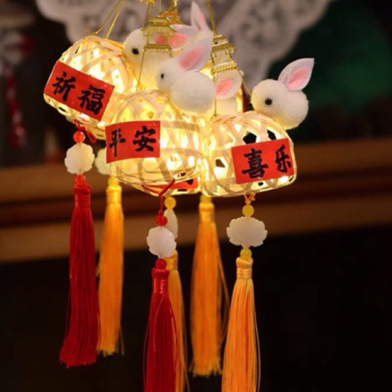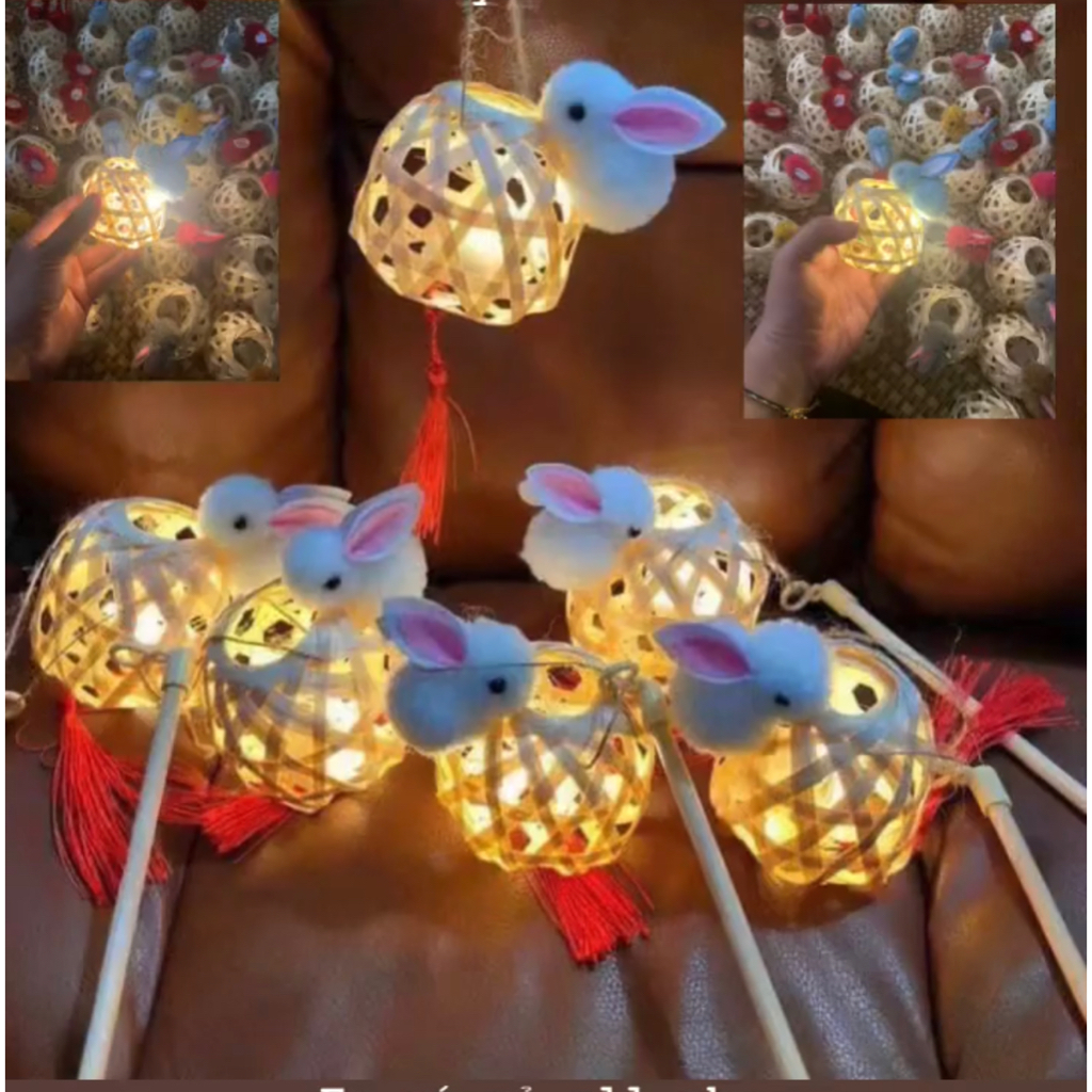 Đèn lồng thỏ tre mini dễ thương kèm đèn LED phát sáng trung thu 2023