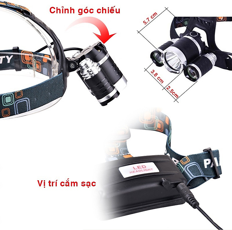 Đèn Pin LED siêu sáng đội đầu được thiết kế gọn nhẹ, đẹp, sang trọng vàrất tiện dụng. Với độ sáng lên tới 3000 Lm khi bật toàn bộ 3 đèn, có thể điều chỉnh góc chiếu, có thiết bị báo đỏ phía sau