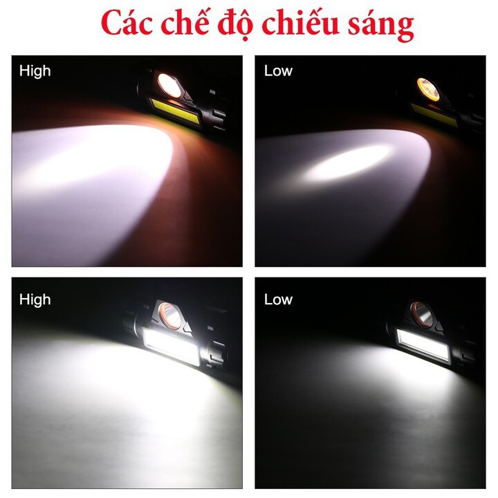 Đèn có 2 chế độ sáng mạnh và sáng yếu từ 2 đèn COB led và Cree XPE Q5