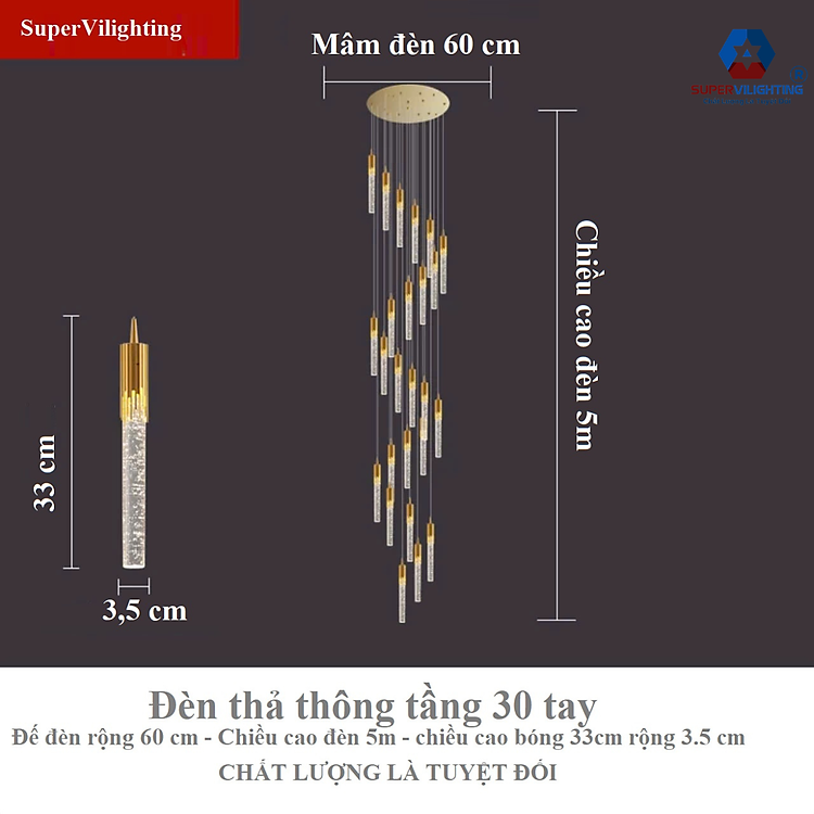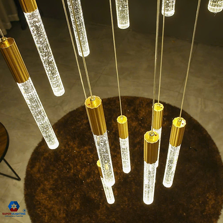 Đèn thả thông tầng pha lê SuperVilighting trang trí phòng khách cầu thang kiểu đèn chùm thả trần bảo hành 24 tháng