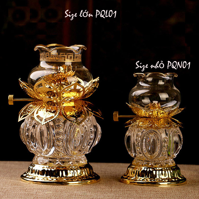 Chiếc èn thờ thủy tinh và hợp kim vàng được thiết kế tạo hình sang trọng, có kích thước : cao 17cm - rộng 10.5 cm - sâu 10.5 cm - nặng 0.5kg .Đèn dung để trang trí bày bàn thờ Chúa,Phật giáo,gia tiên,dùng bày khi thờ cúng các ngày lễ,rằm,mùng một, thôi nôi đầy tháng … Trường hợp cần đốt đèn Quý Khách nên sử dụng loại tinh dầu chuyên dùng để đốt đèn thờ để hạn chế khói và ám khói. khi gần hết bấc Quý Khách có thể sử dụng dây bấc đèn bình thường được bán phổ biến khắp nơi và nối với đoạn bấc còn lại vặn bắc lên để tiếp tục sử dụng, khi gần hết lại nối bấc, cứ vậy đèn có thể đốt mãi mãi.