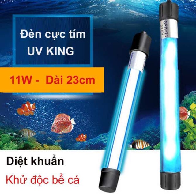 ĐÈN UV King Sterilization Đèn UV diệt khuẩn có tác dụng tiêu diệt tảo, nấm và khử các chất ô nhiễm nước khác trong các bể Cá Cảnh. Sản phẩm công nghệ cao này là công cụ đắc lực, giúp người nuôi cá cảnh giải quyết được rất nhiều vấn đề của Bể Cá.