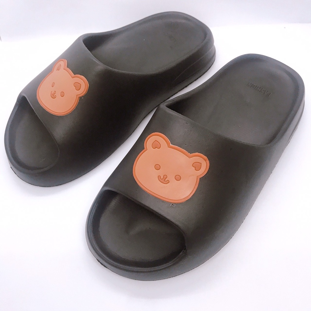 Giới thiệu Dép bánh mì nam nữ màu đen, dép quai ngang họa tiết hình gấu dễ thương cực êm cực mềm