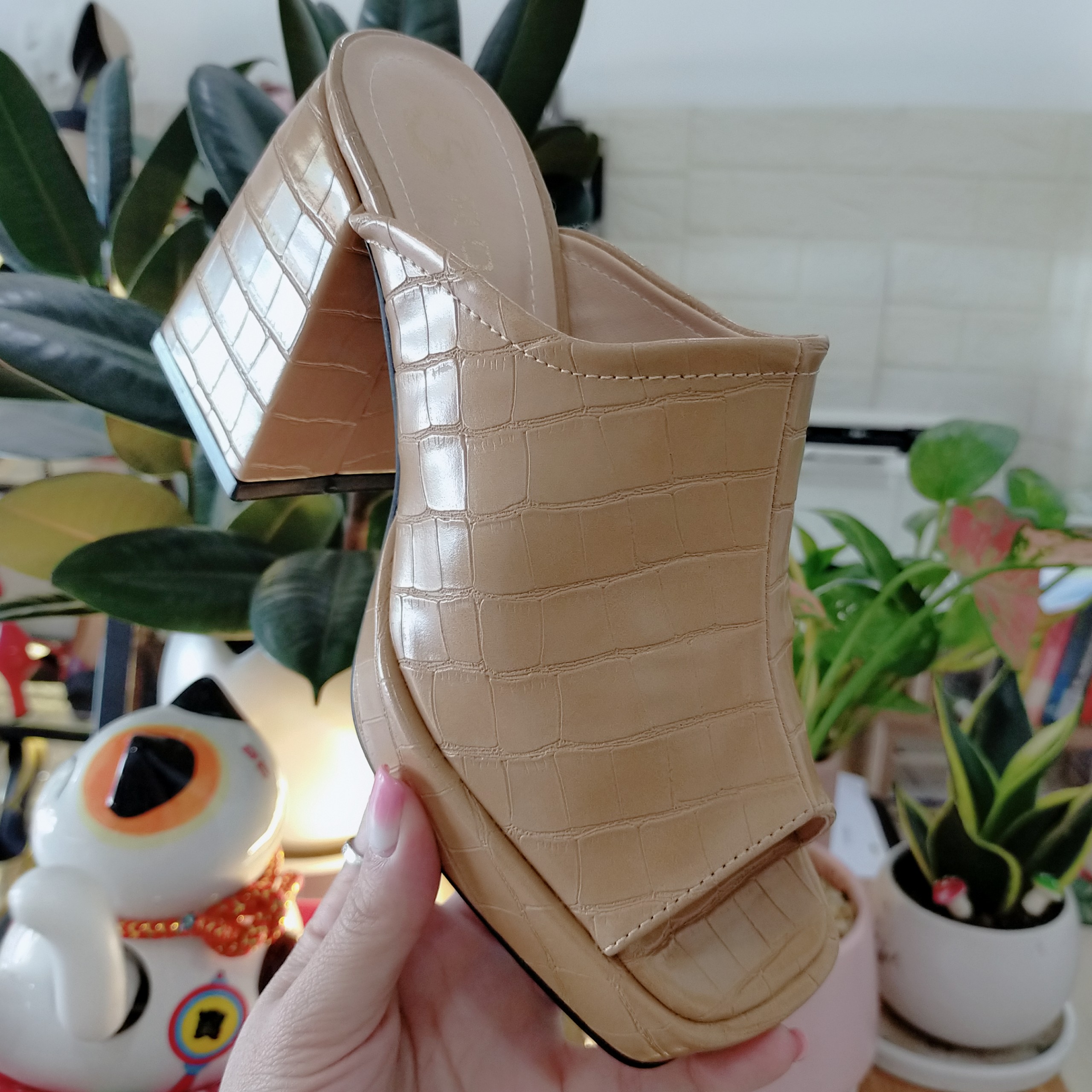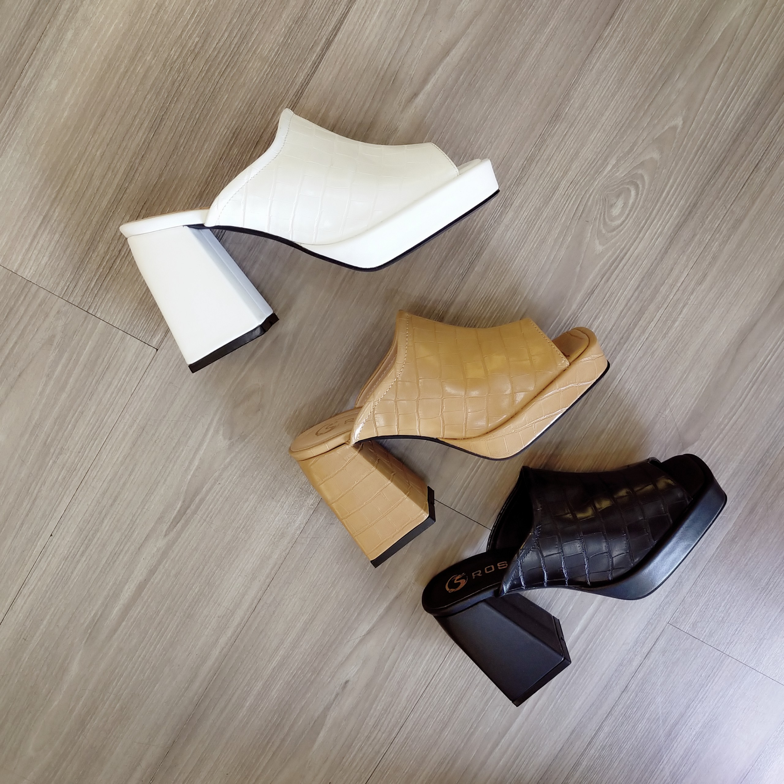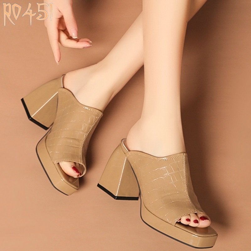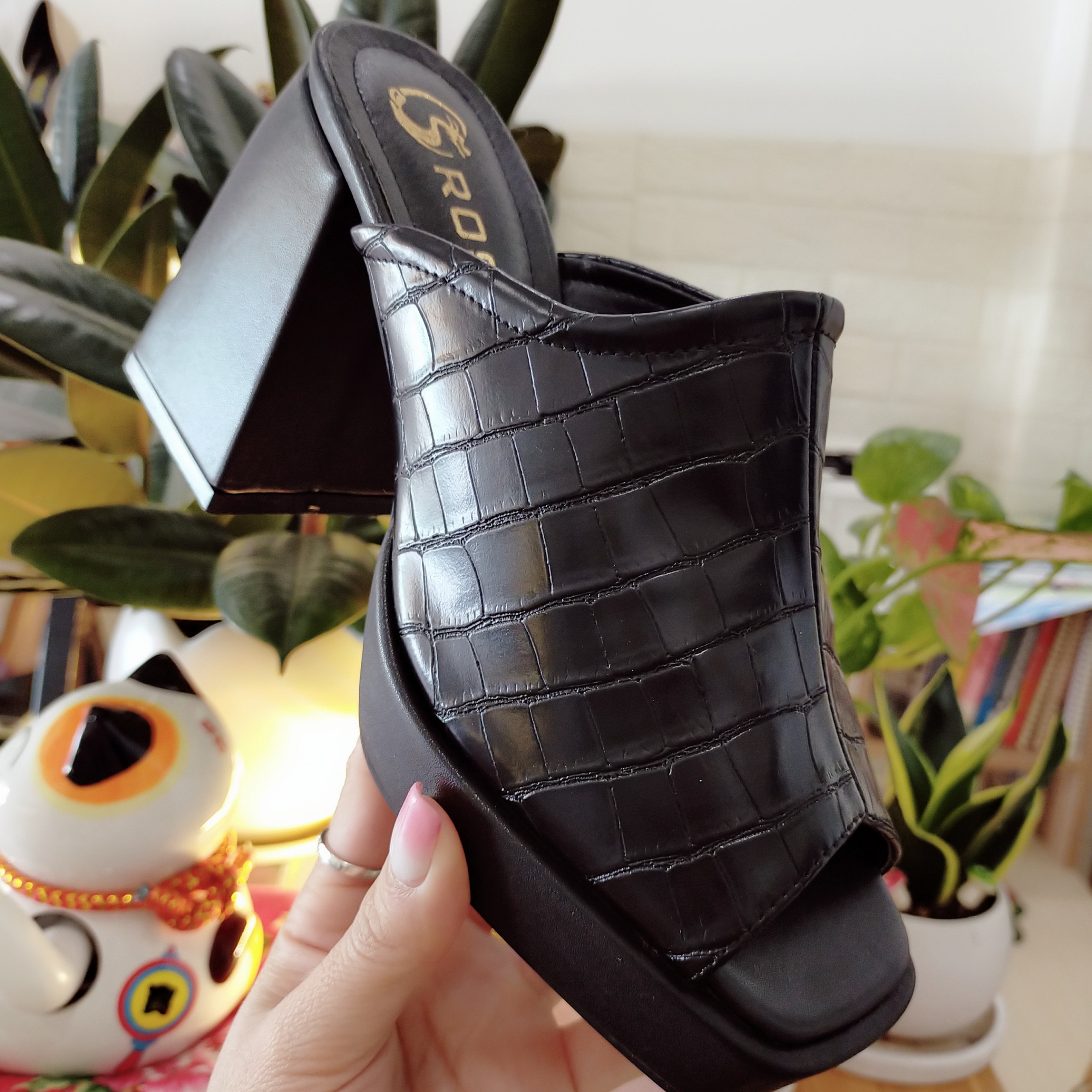 MÔ TẢ SẢN PHẨM: Dép cao gót nữ da vân cao cấp ROSATA RO451 8p - gót trụ- HÀNG VIỆT NAM - BKSTORE
