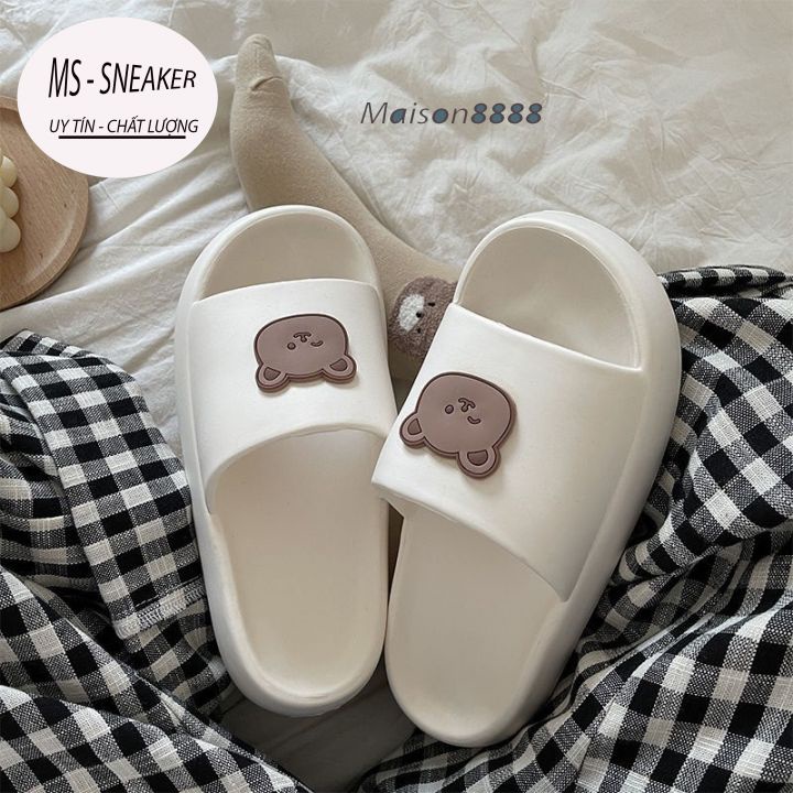 Giới thiệu Dép đi trong nhà, dép bánh mỳ hình mặt cười 3 màu đen trắng/ MS Sneaker