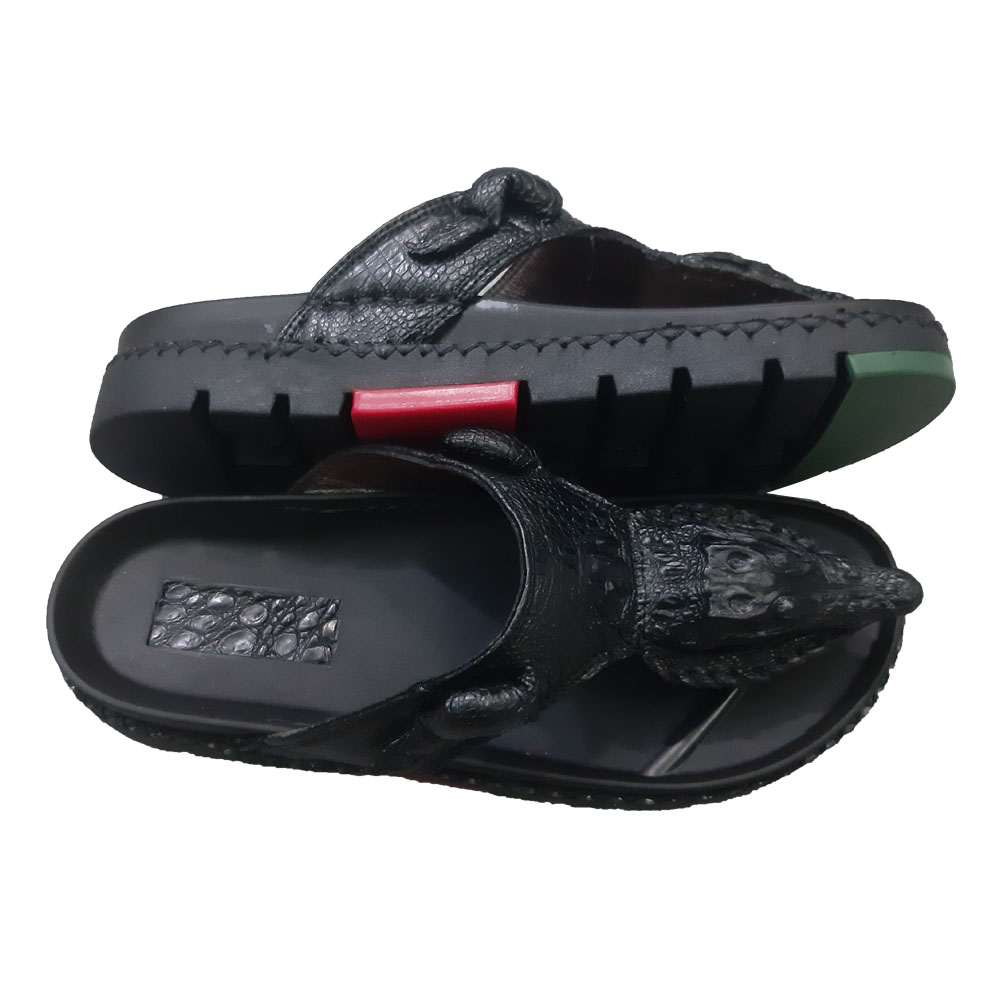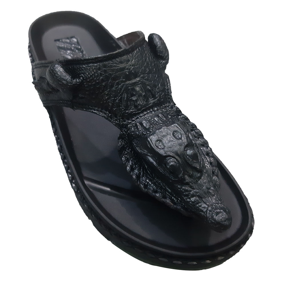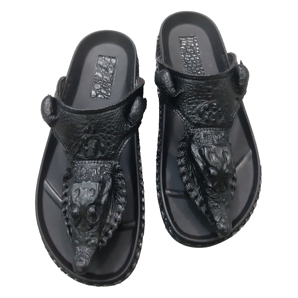 Dép kẹp nam, dép xỏ ngón nam da cá sấu màu đen sang trọng