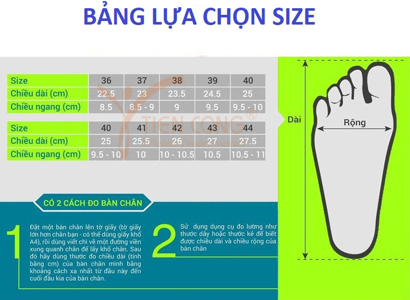- Kích thước: 38, 39, 40, 41, 42, 43