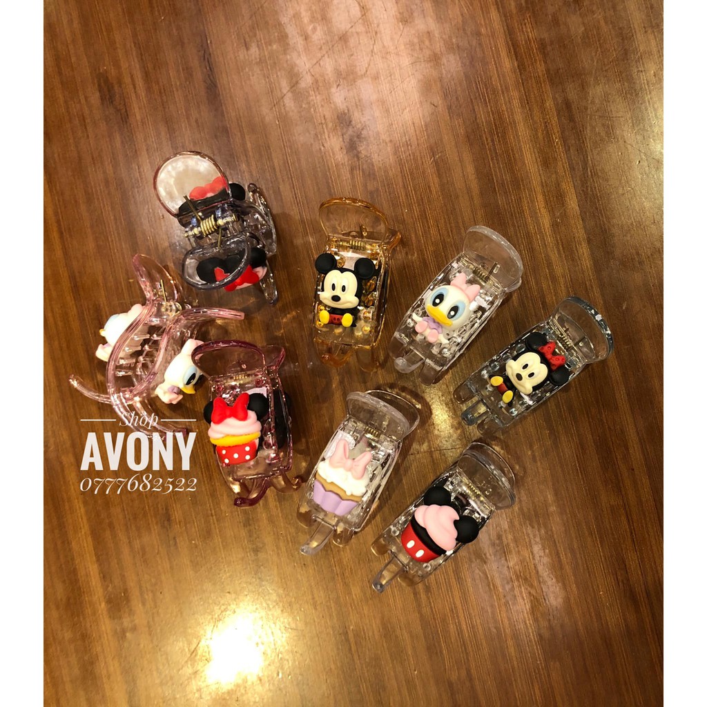 Giới thiệu [đẹp] kẹp tóc càng cua, Bấu tóc 3 - 5 răng trong đính icon Mickey và donald