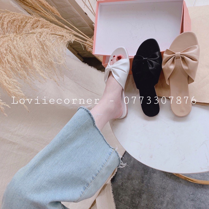 LOVIIECORNER - DÉP NỮ QUAI NGANG ĐẾ BỆT QUAI MẢNH NƠ THỜI TRANG CAO CẤP - DÉP NỮ THỜI TRANG QUAI NGANG