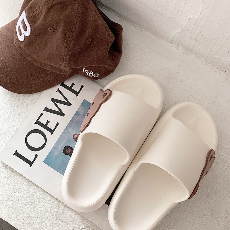 Giới thiệu Dép nam nữ quai ngang đế dày, chất liệu PU, in hình con gấu dễ thương thích hợp mang trong nhà và ngoài trời G1074