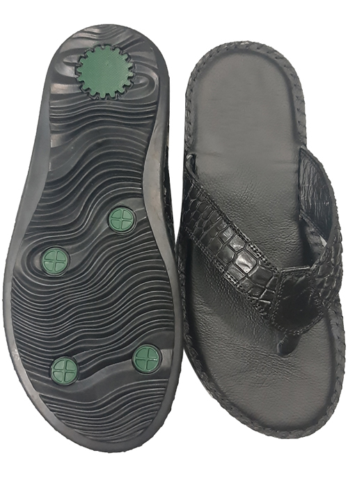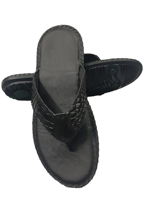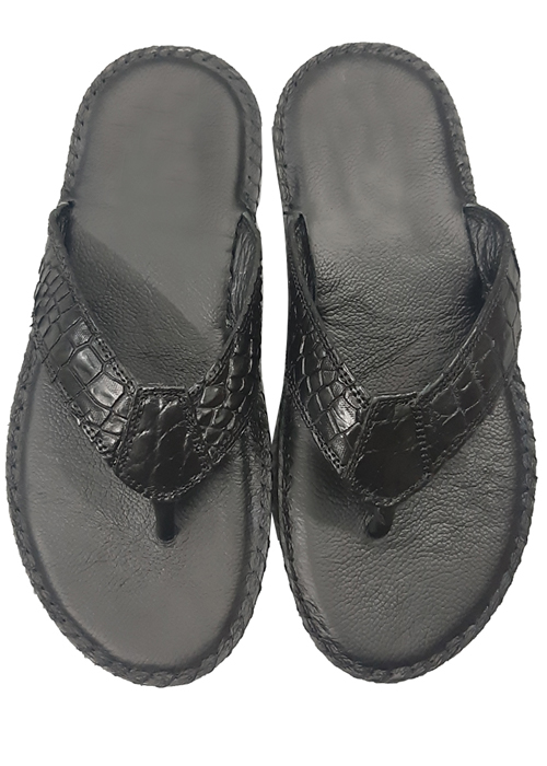 Dép Nam Quai Kẹp Da Cá Sấu Màu Đen - TCF1009