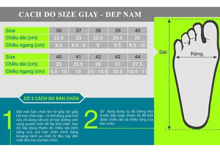 - Kích thước: 38, 39, 40, 41, 42, 43