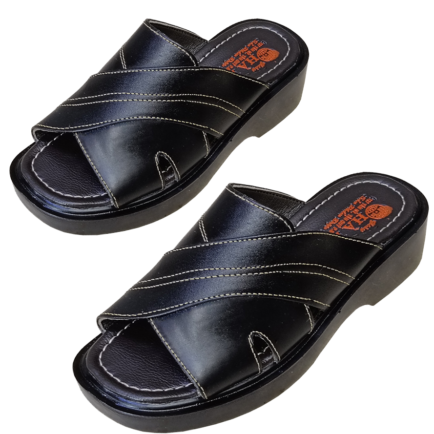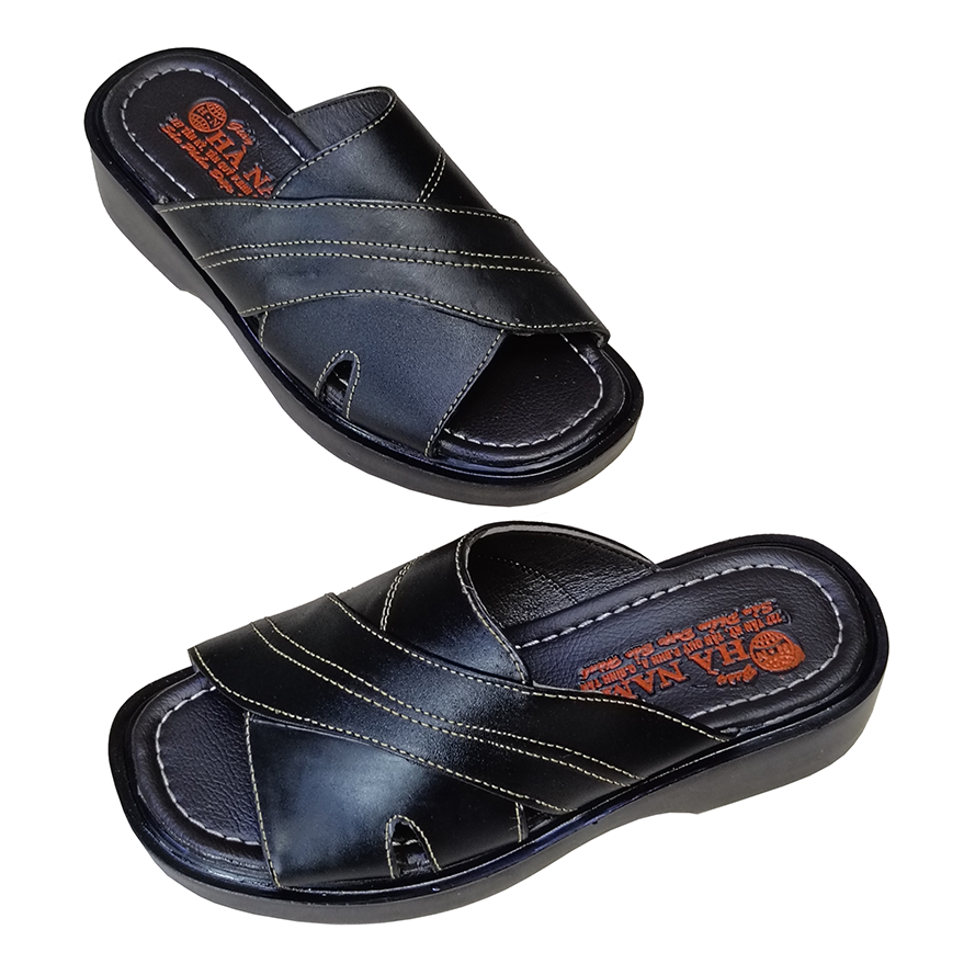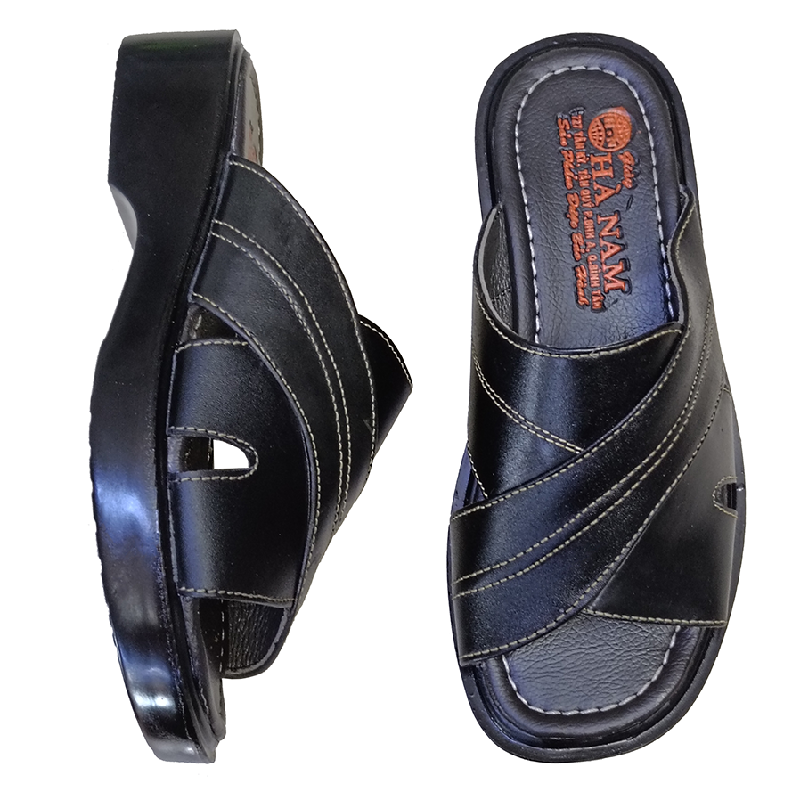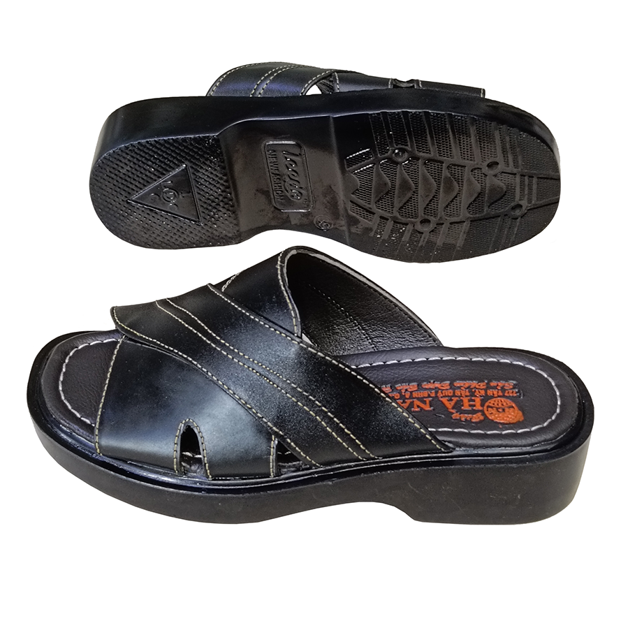 Dép Nam Quai Ngang Da Bò Thật HÀ NAM Đế Cao Dành Cho Người Thấp DN2040