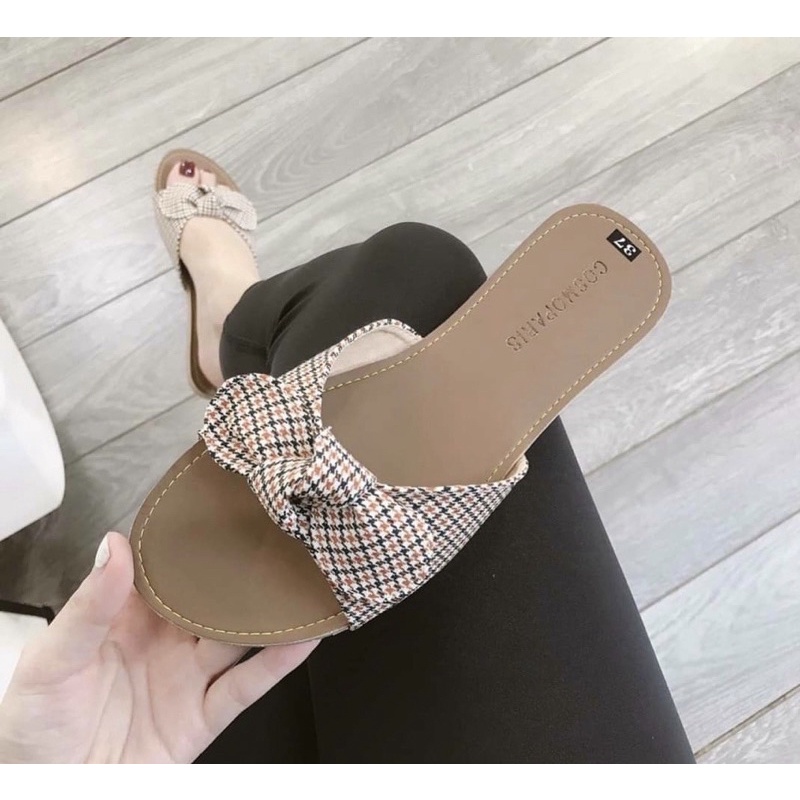 Giày Dép Nữ > Xăng-đan và dép > Dép kẹp/ dép xỏ ngón || Dép nơ kẻ caro