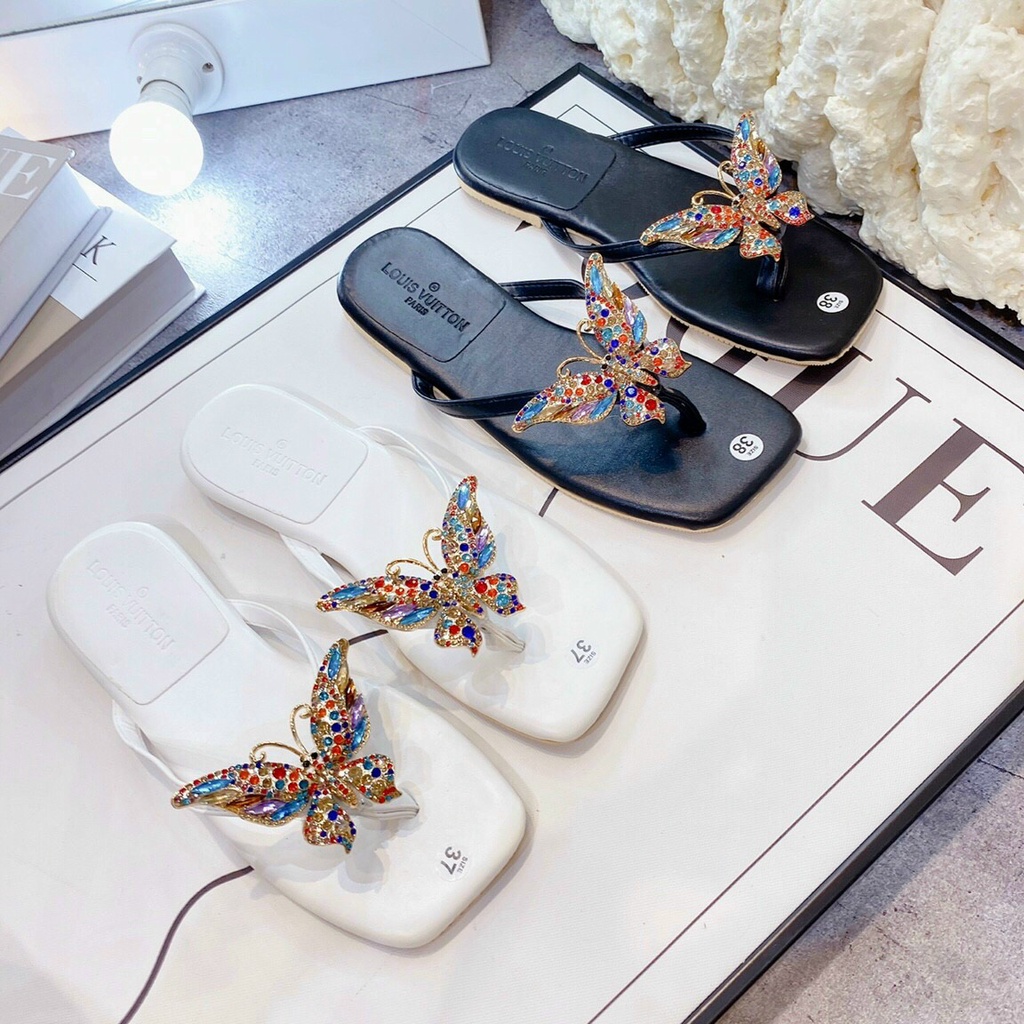 Dép nữ đế bệt Minhtuyetshoes hở mũi- Dép nữ kẹp ngón đính charm đá lớn 7 màu hothit thời trang hè 2022 mã DKB2022 Dép nữ đế bệt mũi vuông đính charm đá 7 màu Dép nữ mũi hở kiểu sỏ ngón xinh xắn dễ thương size 35-39 màu ĐEN-TRẮNG 💘HƯỚNG DẪN CHỌN SIZE Giúp bạn chọn size vừa vặn chân bằng cách đo chiều dài bàn chân (cm) 📍 21.5 - 22.4cm - Size 35 📍 22.5 - 23.0cm - size 36 📍 23.1 - 23.5cm - size 37 📍 23.6 - 24.0 cm - size 38 📍 24.1 - 24.5cm - size 39 📌 CÁCH BẢO QUẢN 🔸 Tránh mang giày dép khi trời mưa hoặc thời tiết xấu để chúng không bị ướt dẫn đến bong tróc. 🔸 Nên cất giữ sản phẩm ở nơi thoáng mát để giữ gìn chất lượng của sản phẩm ở mức tốt nhất 🔸 Lau chùi sản phẩm thường xuyên để tránh bụi bẩn 🔸 Bạn sử dụng các loại xà bông, nước rửa chén, kem cạo râu để giặt 🔸 Chú ý là nên dùng bàn chải mềm hoặc khăn mềm để chà giặt sẽ tốt hơn cho đôi giày của bạn 🔸 Nên phơi đôi giày trong mát, không nên phơi trực tiếp dưới ánh nắng mặt trời 🔸 Sau khi giặt xong để ráo nước sử dụng giấy mềm, thấm nước, cuốn 2-3 vòng phủ toàn đôi giày. 🔸 Sau đó bạn có thể đem phơi trực tiếp dưới nắng mà không ảnh hưởng. 🔸 Khi da bị ẩm ướt cần lau khô, để nơi khô thoáng, tránh những tác động của nguồn nhiệt hoặc ánh sáng mặt trời 🔸 Nếu sản phẩm bị ngấm nước do đi mưa thì nên hong khô sản phẩm trước khi cất giữ để giữ form giày #dép-kẹp-ngón #dép-nữ #dép-kẹp #dép-nữ-xinh #dép-bướm-charm #dép-kẹp-bướm #dép-đính-đá #dép-kẹp-đính-đá #dép-bệt #dép-nữ-đế-bệt #dép-kẹp-ngón #dép-nữ-kẹp-ngón #dép-đính-đá-kẹp-ngón #dép-kẹp-đính-đá-xinh