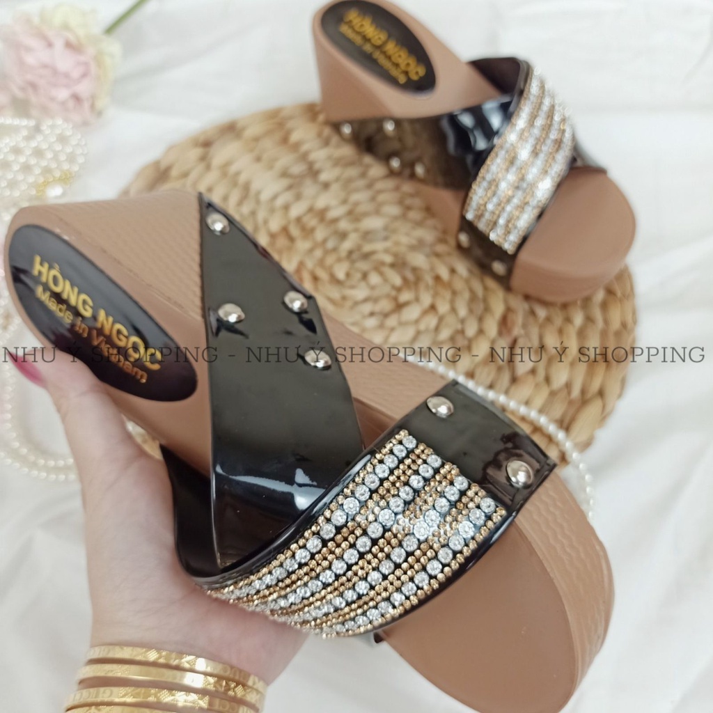 Giới thiệu Dép nữ đế xuồng quai chéo đính đá đế PU nhẹ êm tôn dáng-TBXDa