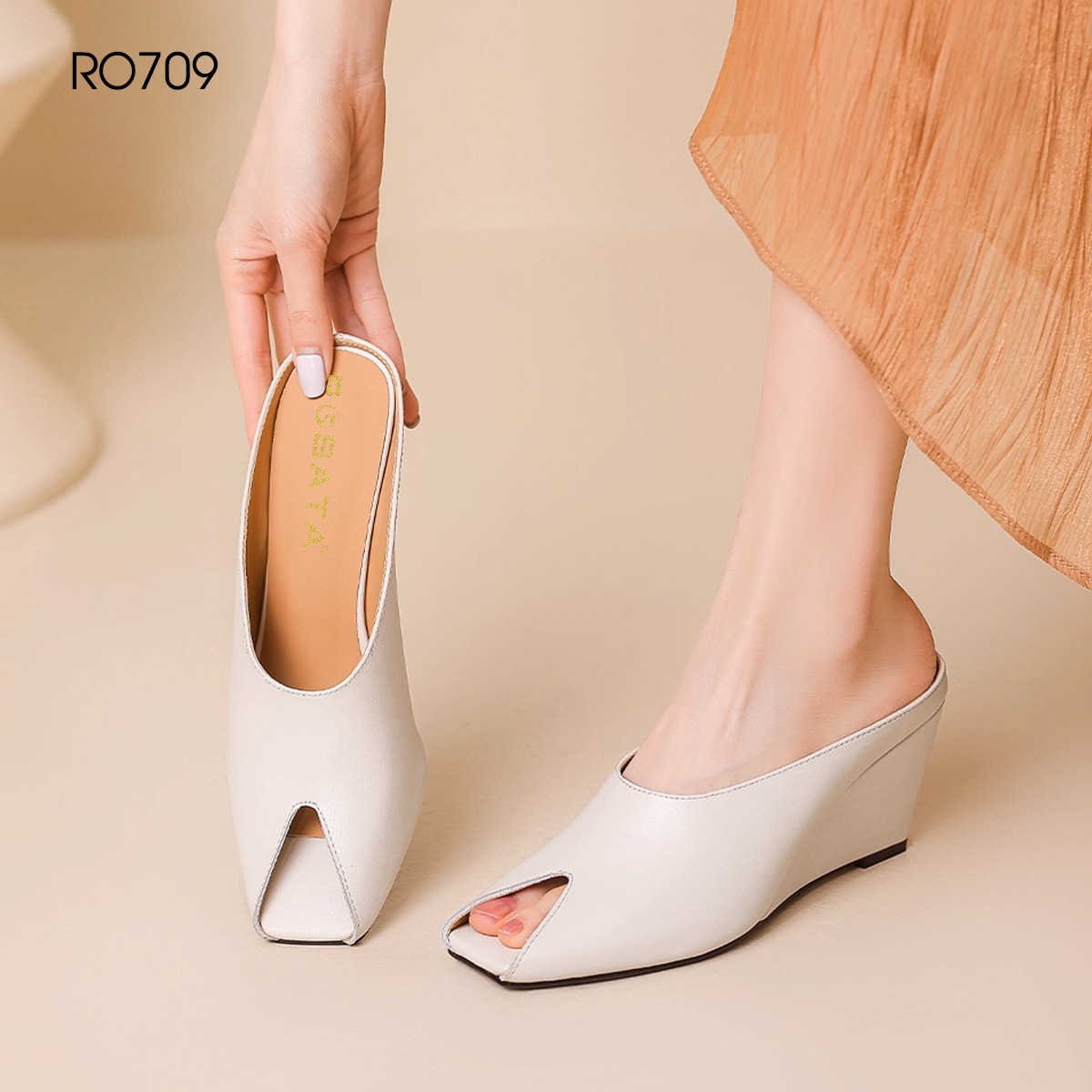 MÔ TẢ SẢN PHẨM: Dép nữ hở mũi, đế xuồng ROSATA RO709 - 7p - Đen, Trắng - BKSTORE