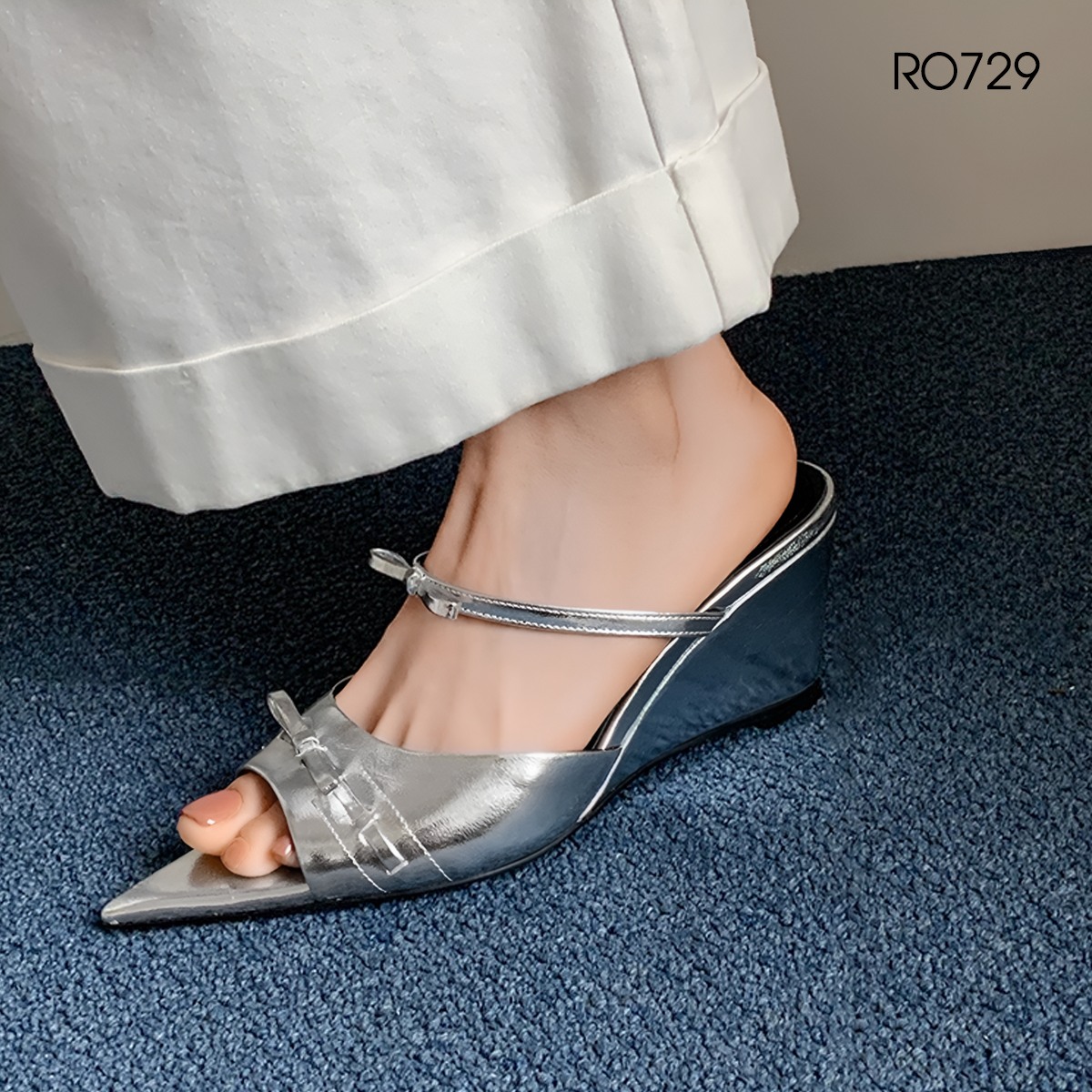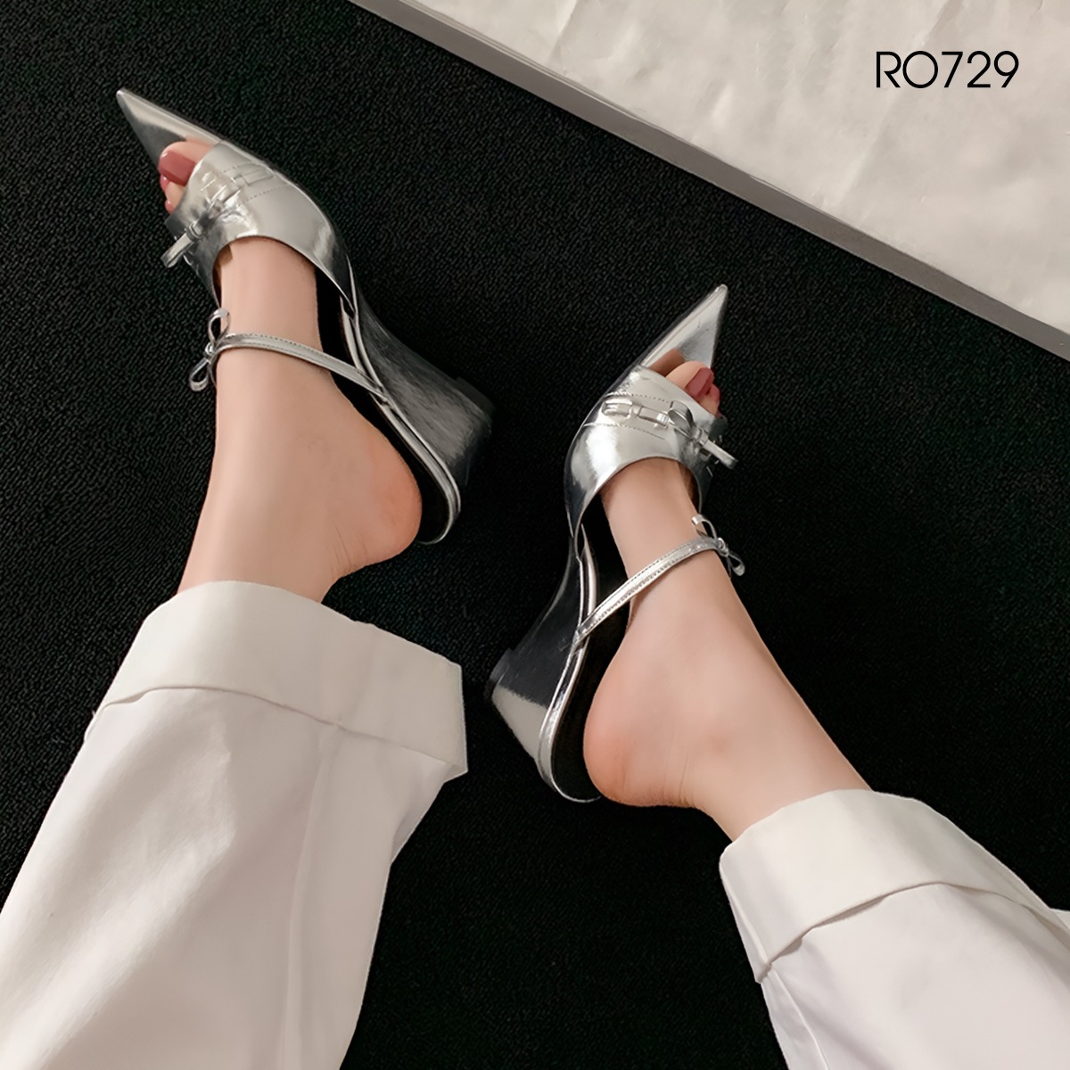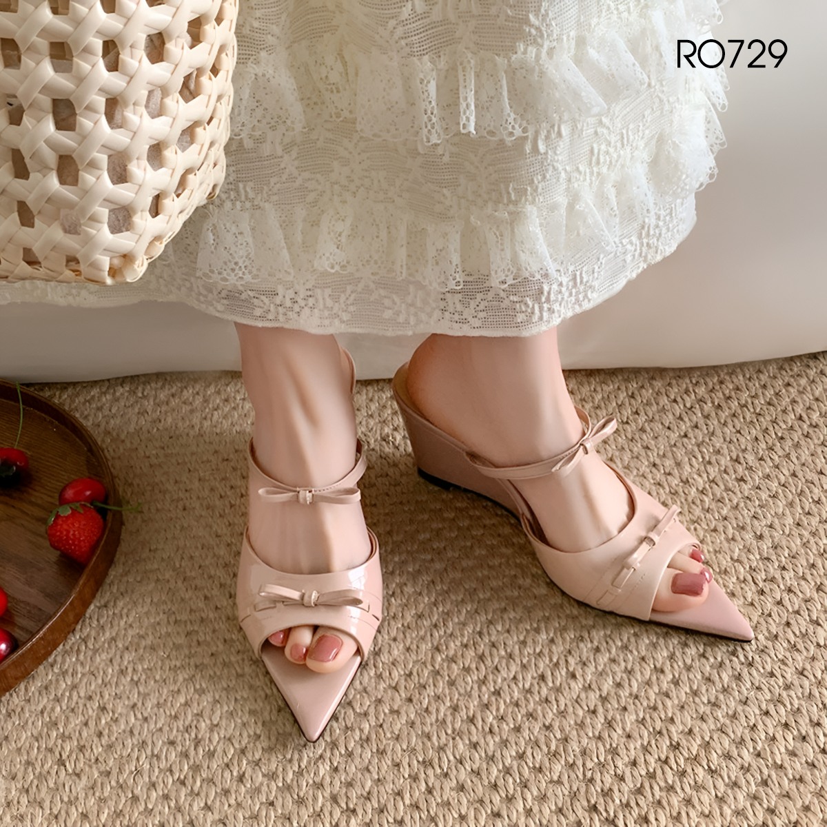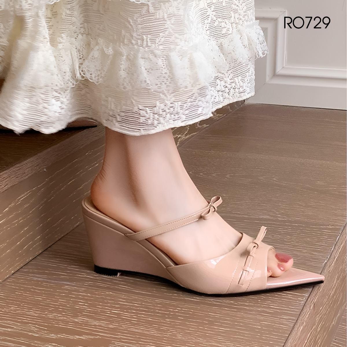 MÔ TẢ SẢN PHẨM: Dép nữ mũi nhọn, đính nơ, đế xuồng ROSATA RO729 - 7p - Bạc, Nude - BKSTORE