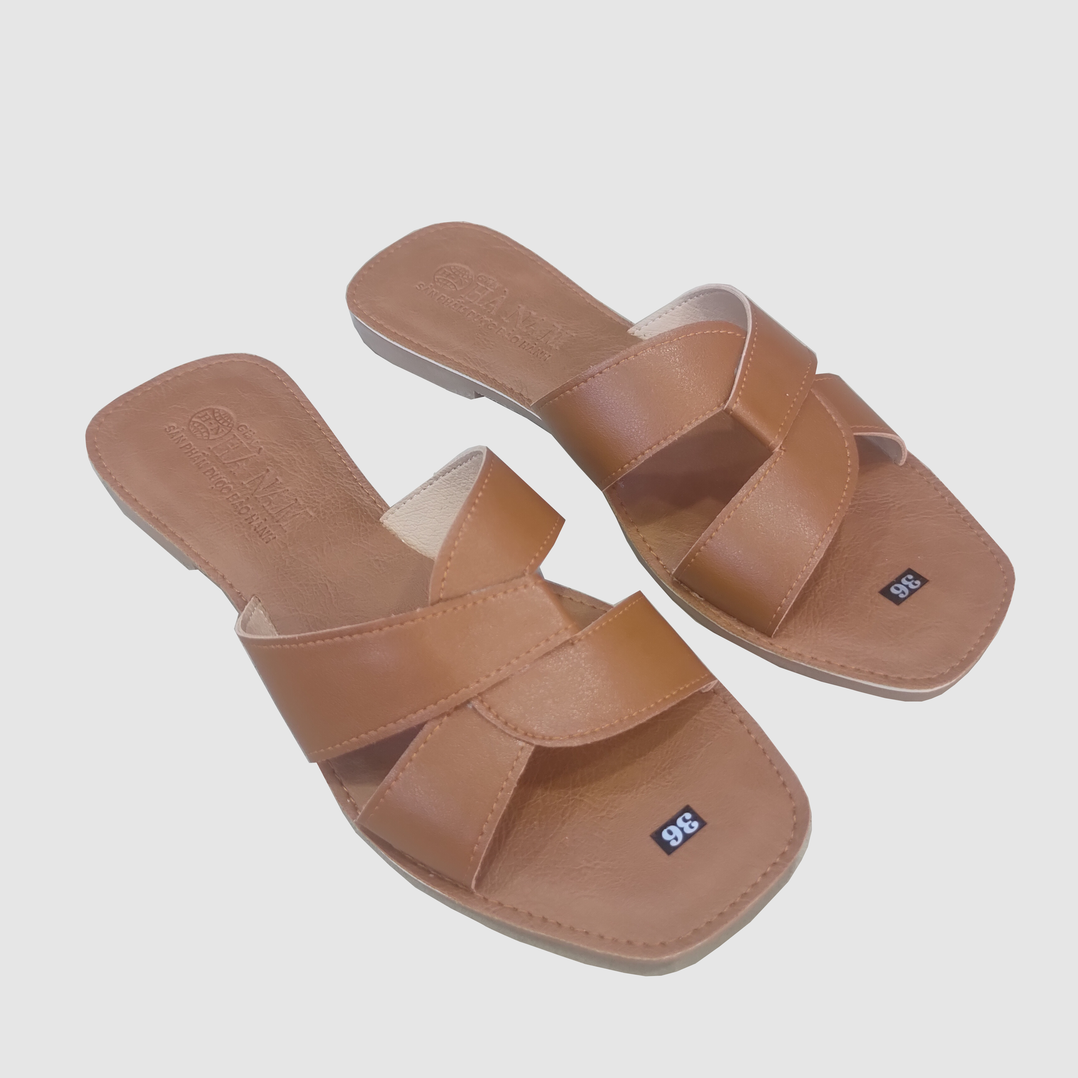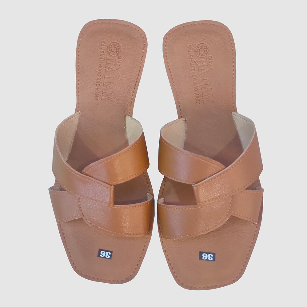 Dép Nữ Quai Chéo Đế Bệt HÀ NAM Thời Trang Da Bò Cao Cấp DNU2080c