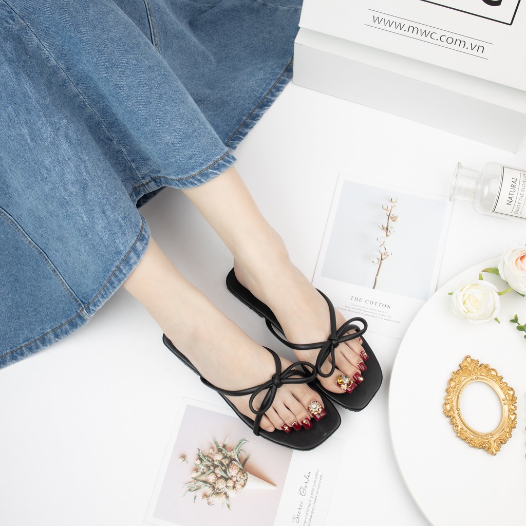 𝑻𝑯𝑶̂𝑵𝑮 𝑻𝑰𝑵 𝑺𝑨̉𝑵 𝑷𝑯𝑨̂̉𝑴 Tên sản phẩm:Dép nữ quai chéo thắt nơ MWC NUDE- 3240 ◦ Chất liệu da tổng hợp ◦ Màu sắc : Đen, Xám ◦ Size 35-39 ◦ Việt Nam sản xuất ◦ Giao hàng trên toàn quốc, thanh toán khi nhận hàng 𝑯𝑼̛𝑶̛́𝑵𝑮 𝑫𝑨̂̃𝑵 𝑪𝑯𝑶̣𝑵 𝑺𝑰𝒁𝑬 ◦ Form giày Việt Nam. Bạn chọn như size giày thường mang. ◦ Tuỳ dáng bàn chân của bạn và kiểu giày, sẽ có sự chênh lệch size đôi chút. ◦ Vui lòng nhắn cho bộ phận CSKH để tư vấn.