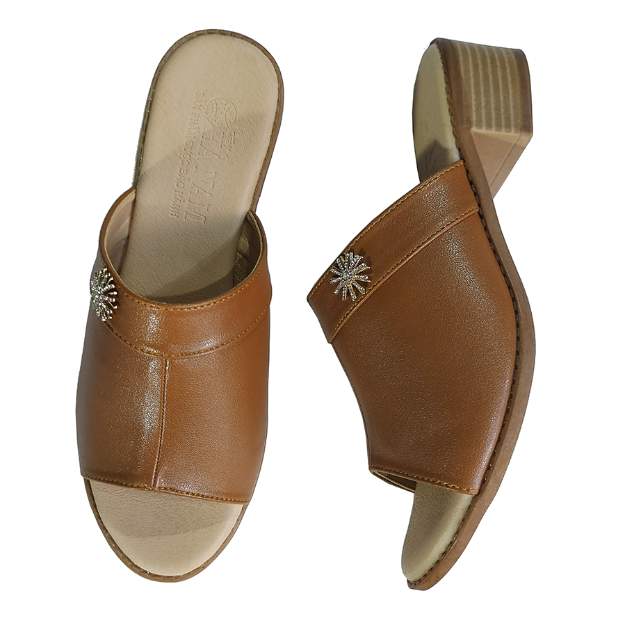 Giới thiệu Dép Nữ Quai Ngang Cao Gót HÀ NAM Da Bò Thời Trang Cao Cấp 3cm DNU2176