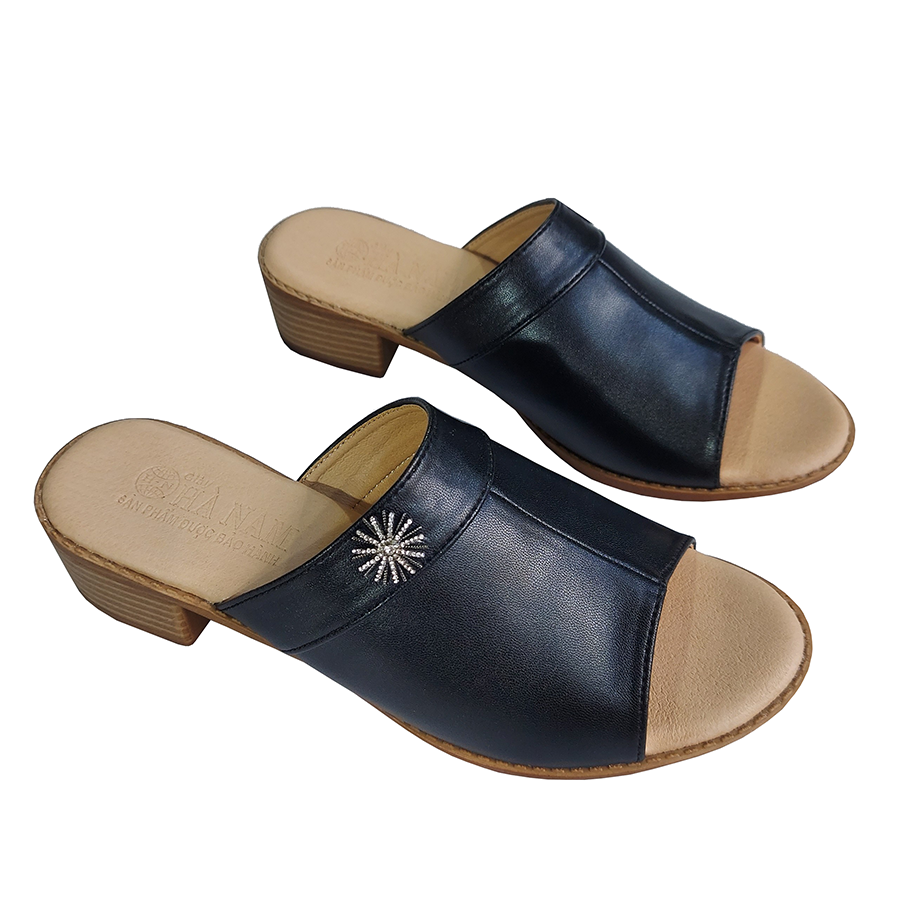 Dép nữ quai ngang cao gót 3cm HÀ NAM da bò thời trang cao cấp DNU2176