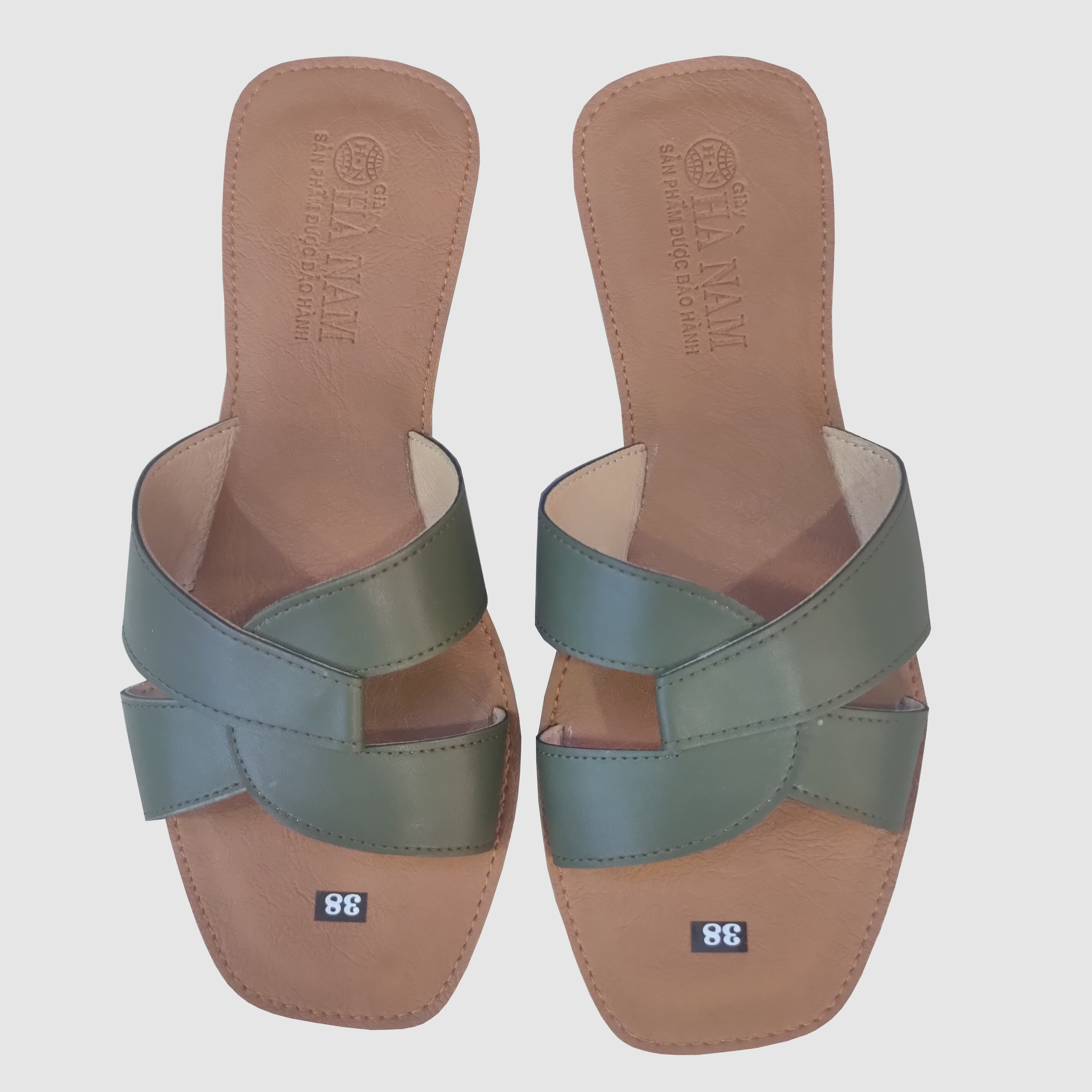 Dép Nữ Quai Ngang Đế Bệt Da Bò Thật TiTi ĐÔ Cao Cấp DNU2078