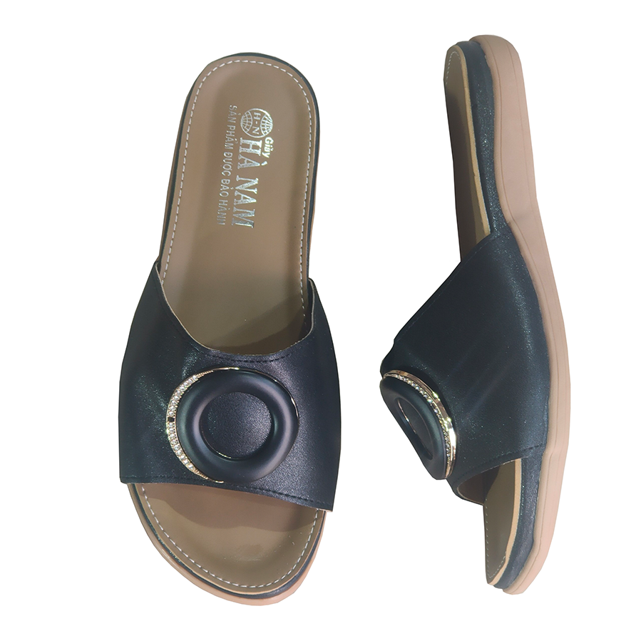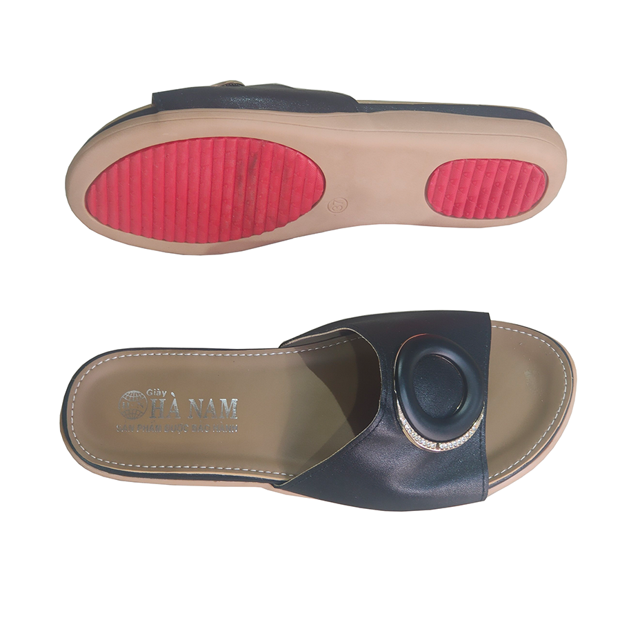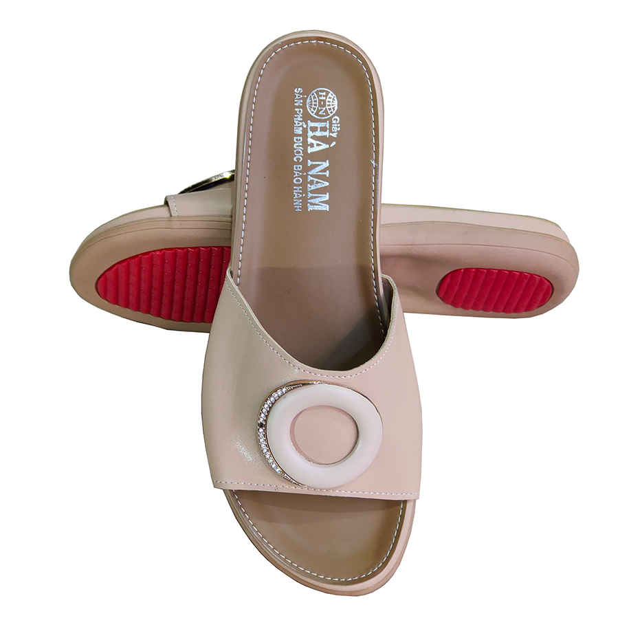 Dép Nữ Quai Ngang Đế Bệt HÀ NAM Da Bò Thật Cao Cấp 3cm DNU2066