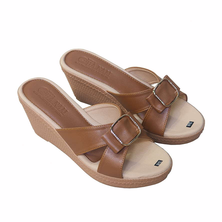 Dép nữ quai ngang đế xuồng da bò HA NAM cao cấp DNU2152